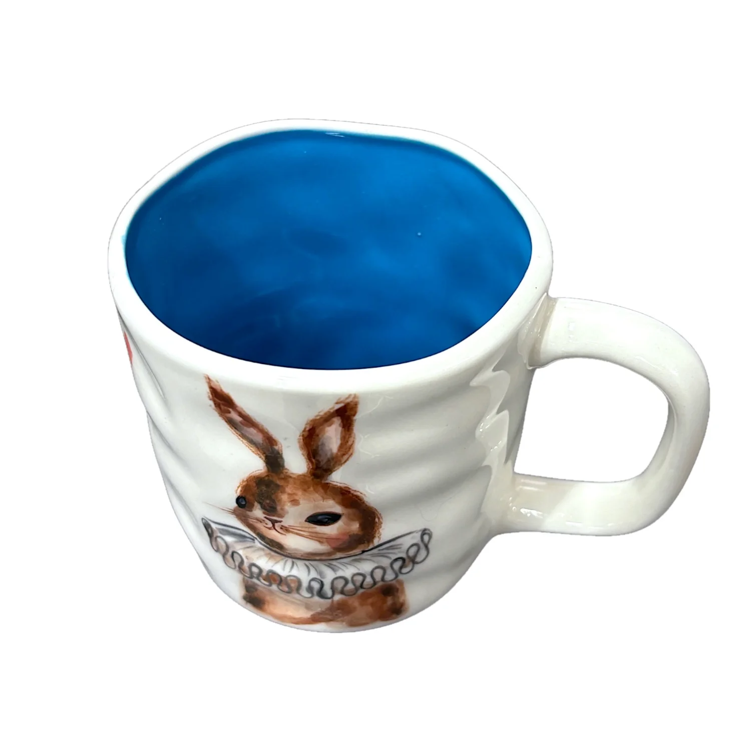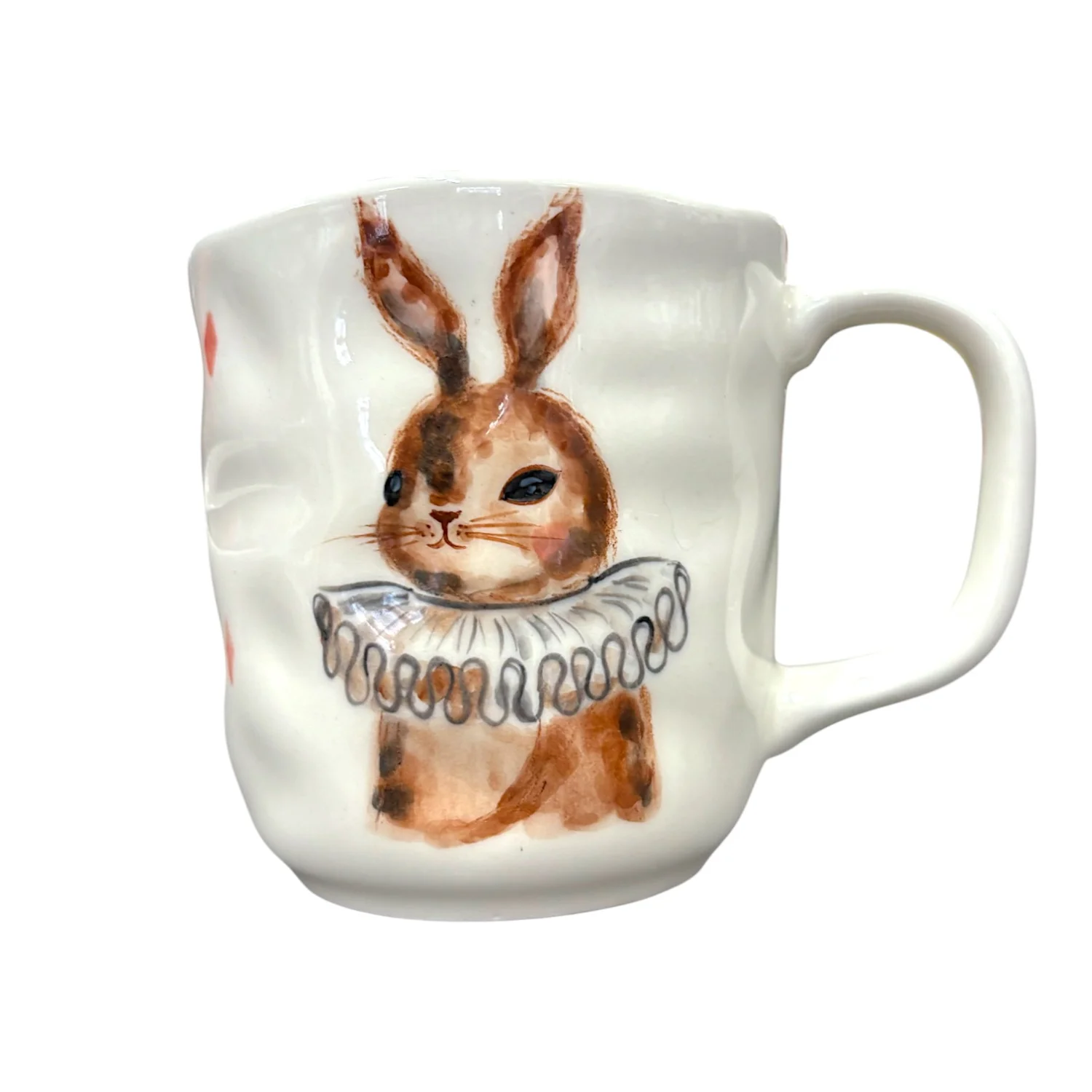 Кружка ручной работы Ким керамика с росписью Зайка в жабо с розовыми ромбиками, фарфор, 350 мл