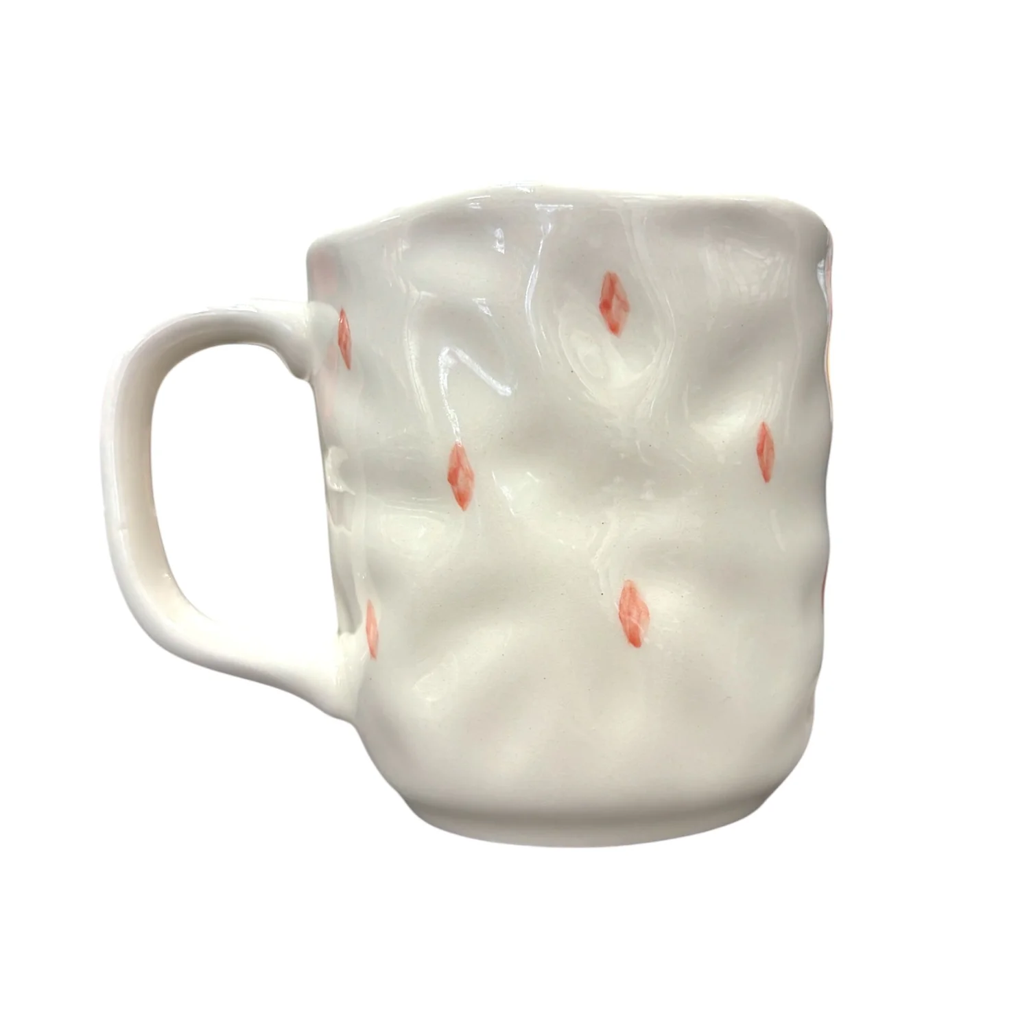 Керамическая кружка ручной работы с росписью «Зайка в жабо с розовыми ромбиками». Производитель - керамистка Ситникова Юлия (Kim.ceramics).
