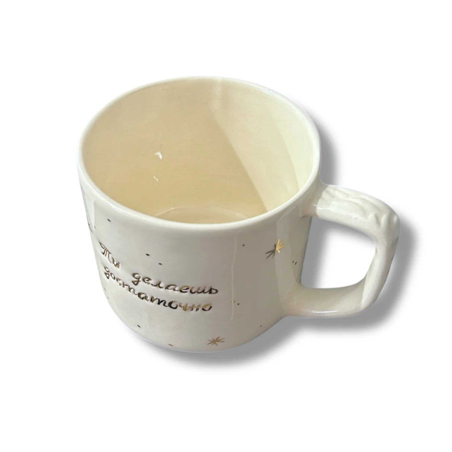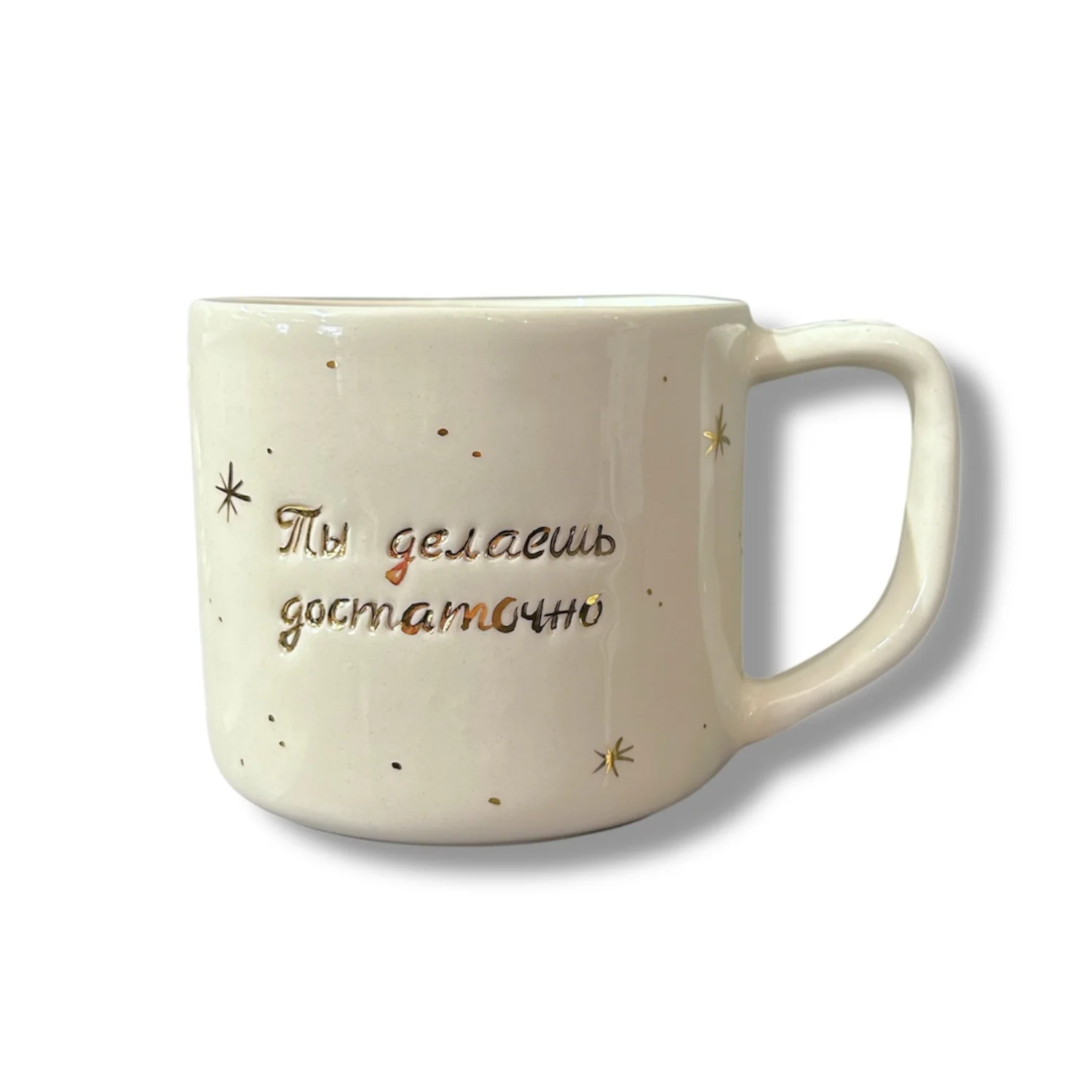 Кружка ручной работы Анна Герман с золотыми звёздочками и надписью "Ты делаешь достаточно", белая, фарфор, 300 мл