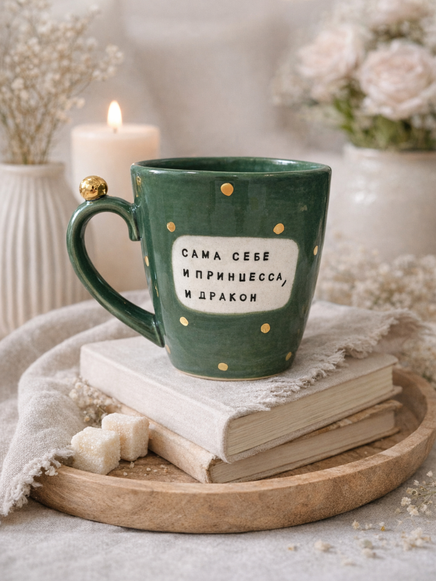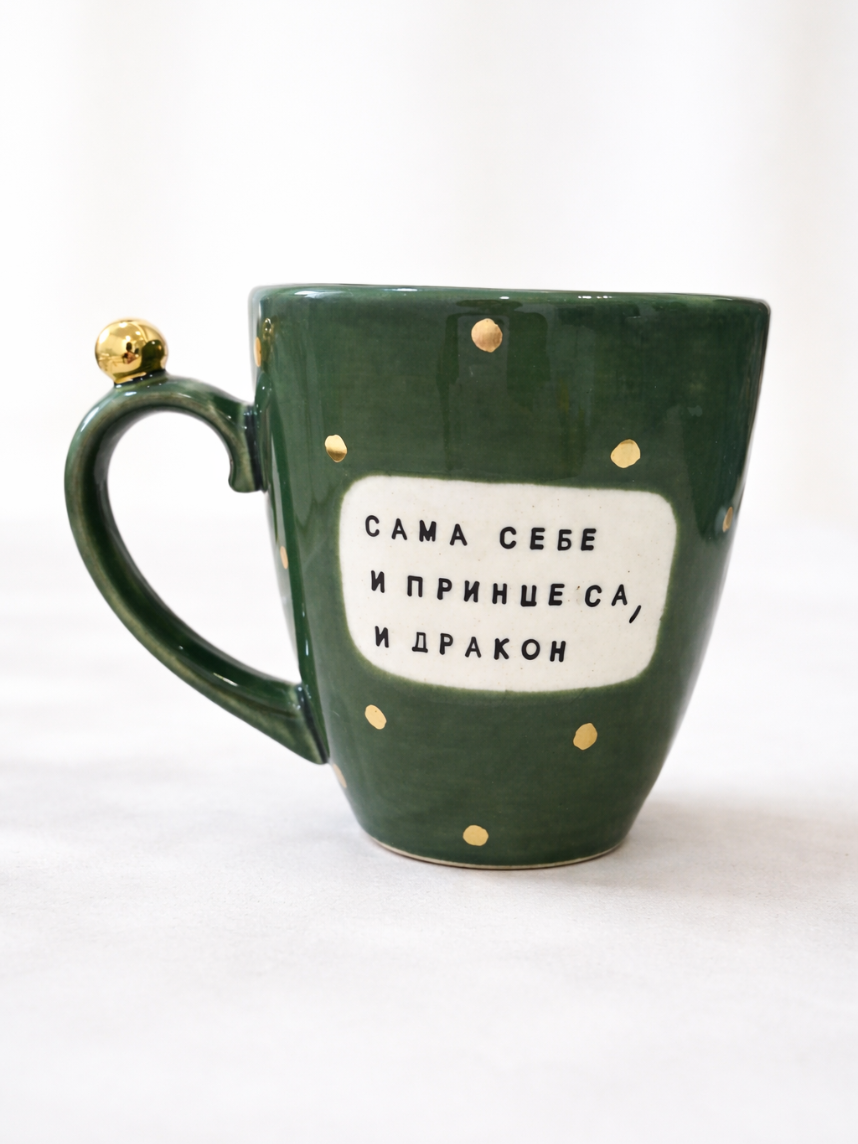 Кружка ручной работы NF ceramics «Сама себе и принцесса, и дракон», зелёная, керамика, 400 мл
