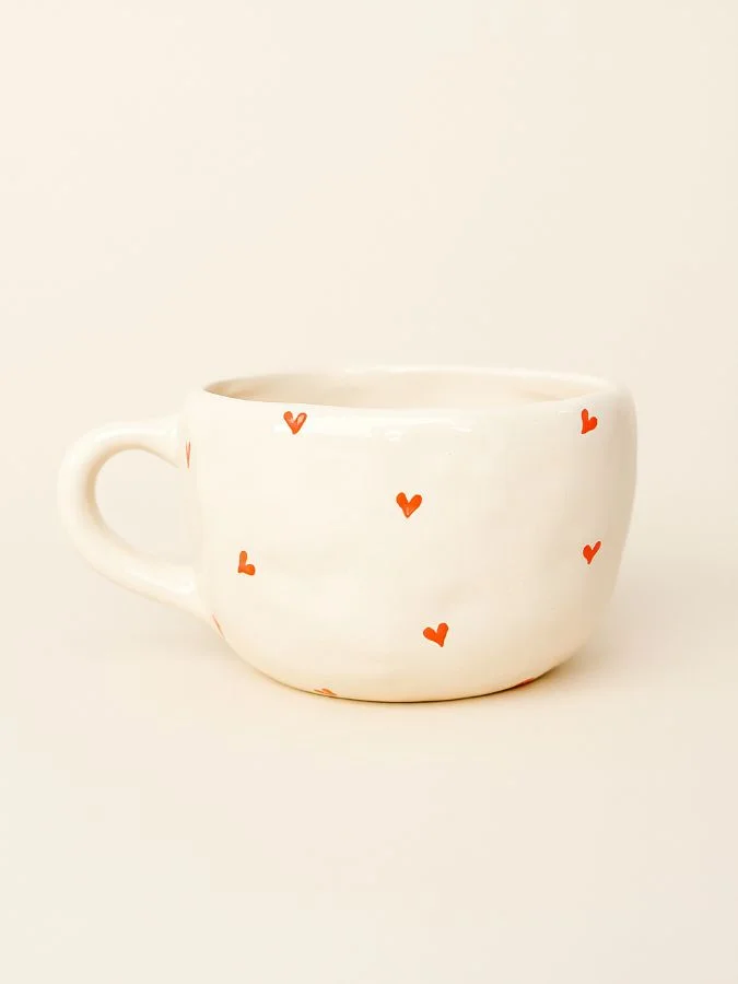 Керамическая кружка ручной работы «Сердечки». Производитель - петербургская керамистка Аня Мурмыло (Keramurrr).