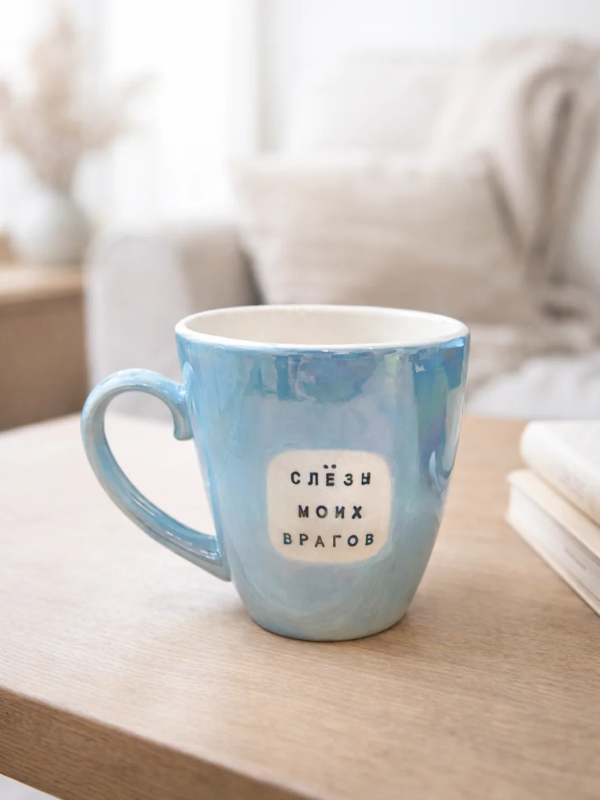 Кружка ручной работы Тата вытворяет/NF ceramics «Слёзы моих врагов», голубая, керамика, 400 мл