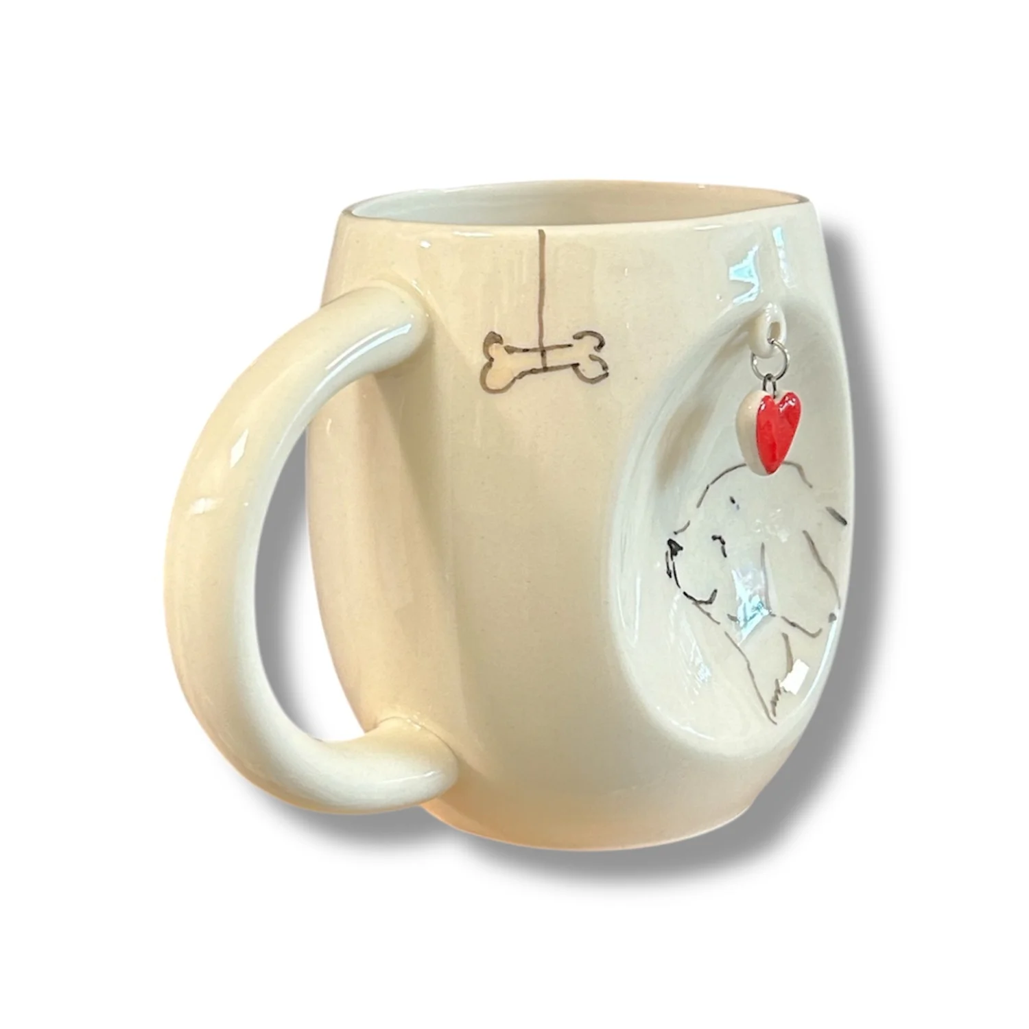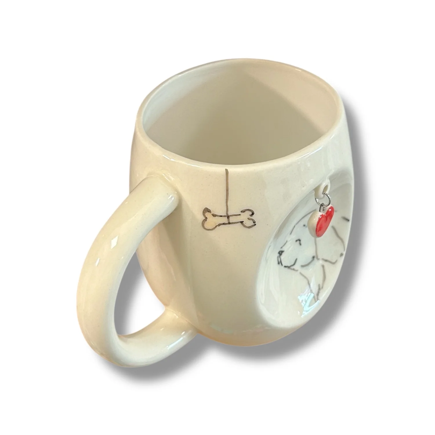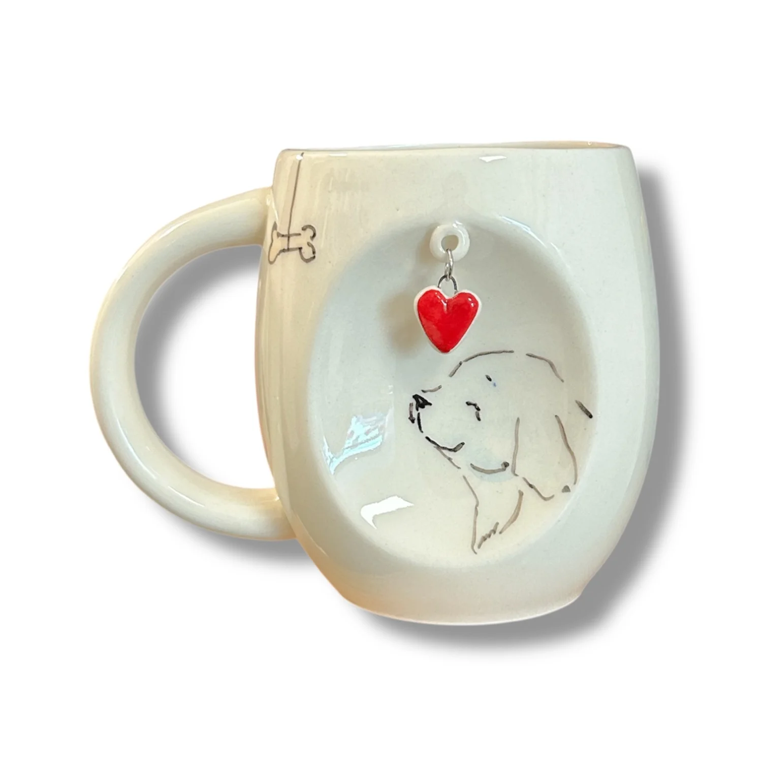 Кружка ручной работы НАДО ЖЕ Собачка и косточкой с подвеской сердечком, керамика, 300 мл
