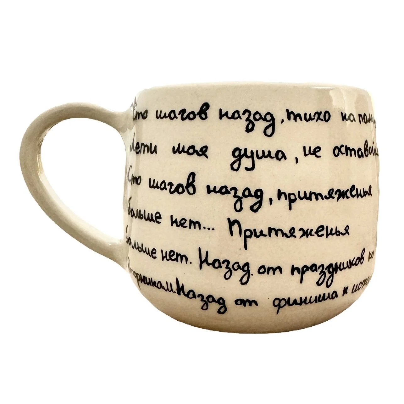 Кружка ручной работы «Сто шагов назад» от бренда Sova.Ceramics.