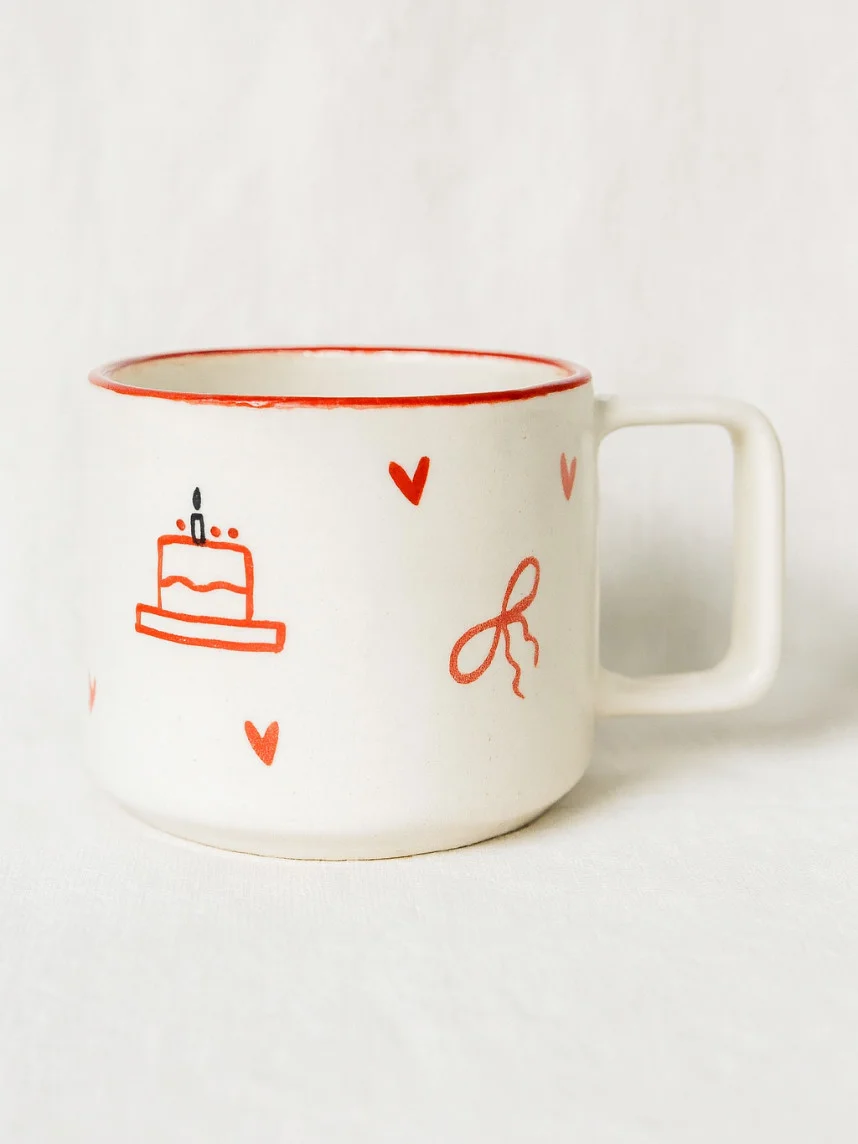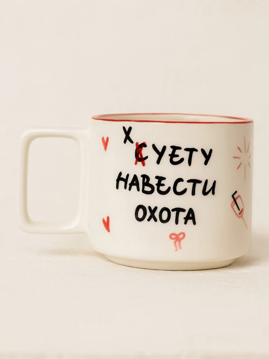 Кружка ручной работы РУКИ В ГЛИНЕ «Суету навести охота», бело-красная, 350 мл