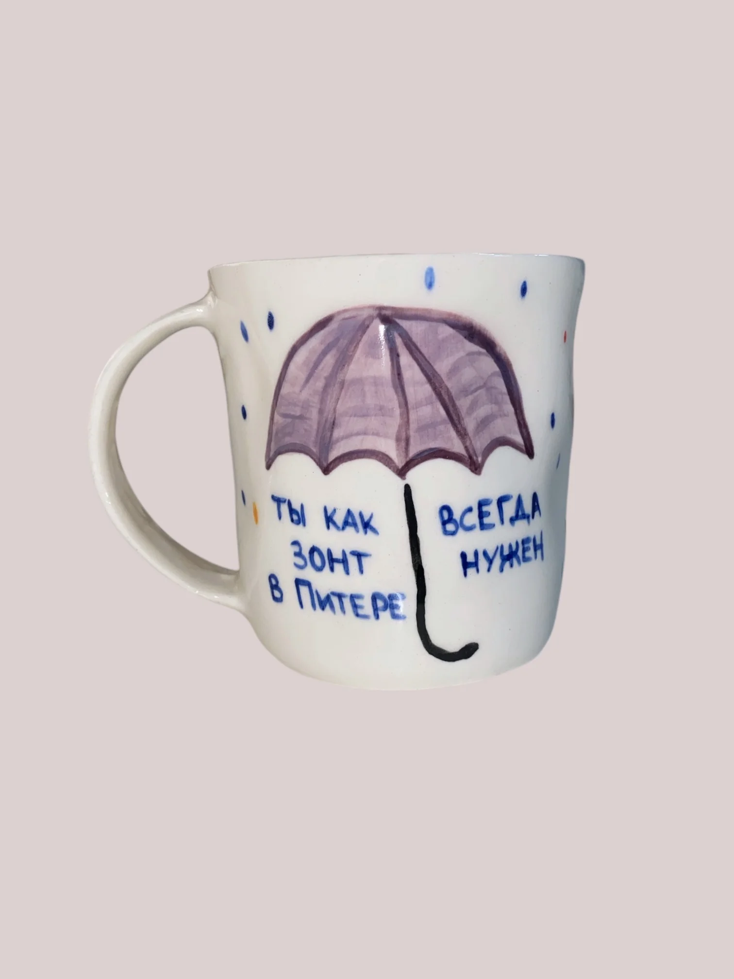 Кружка ручной работы сувенирная «Ты как зонт в Питере», керамика, 250 мл