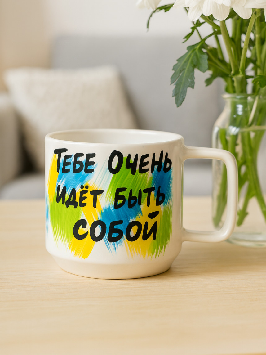 Кружка ручной работы «Тебе очень идёт быть собой», сине-зелёная, керамика, 450 мл
