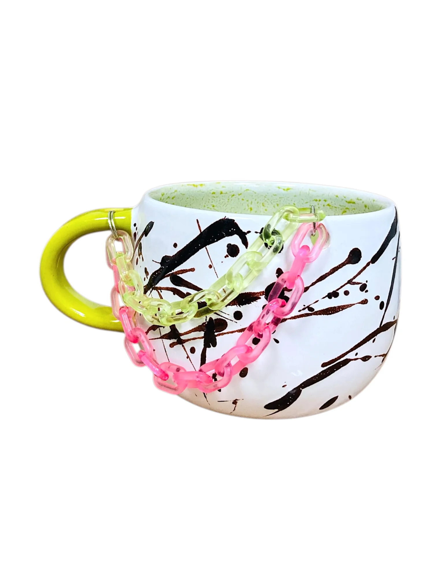 Кружка ручной работы Барыня «Техно», белая с брызгами, с цепью, 380 мл, керамика