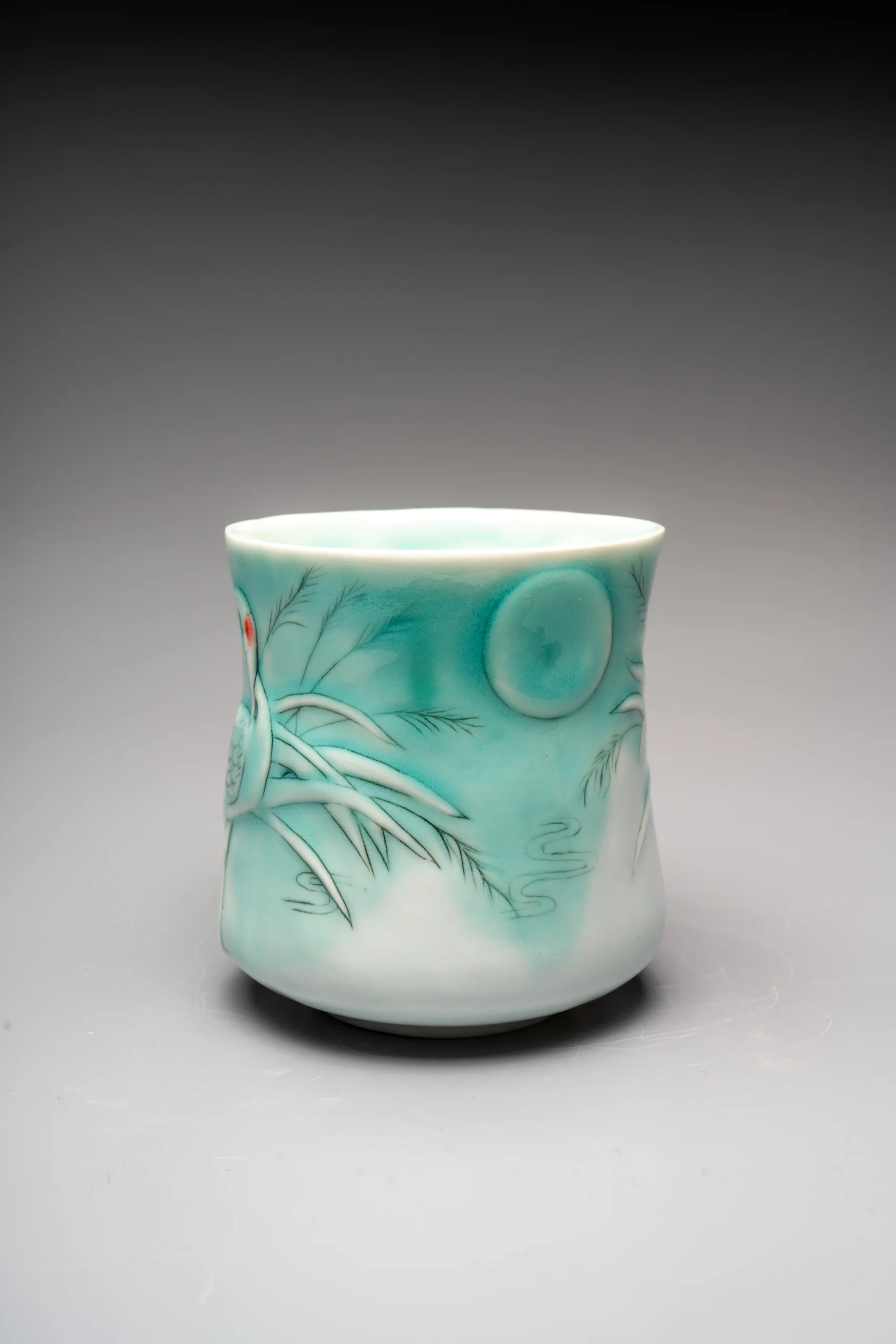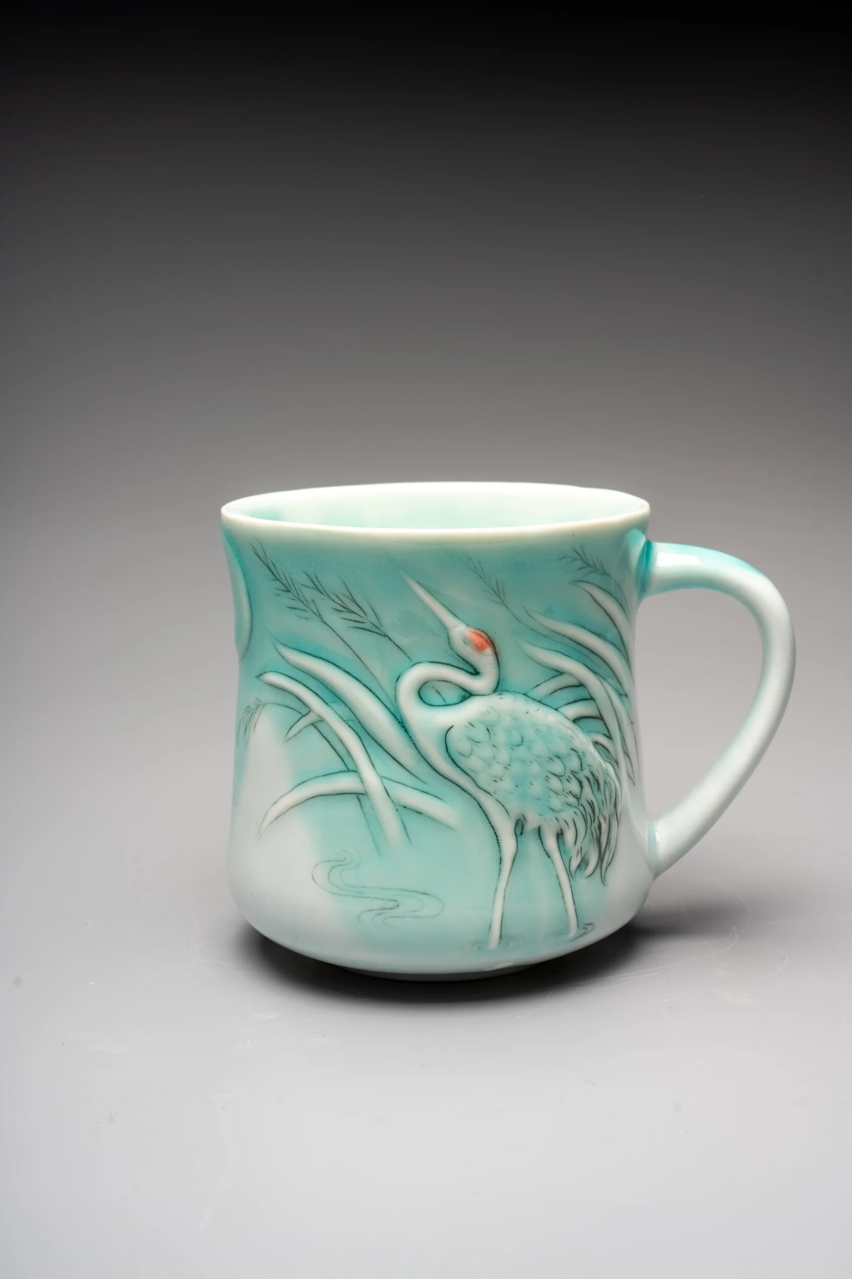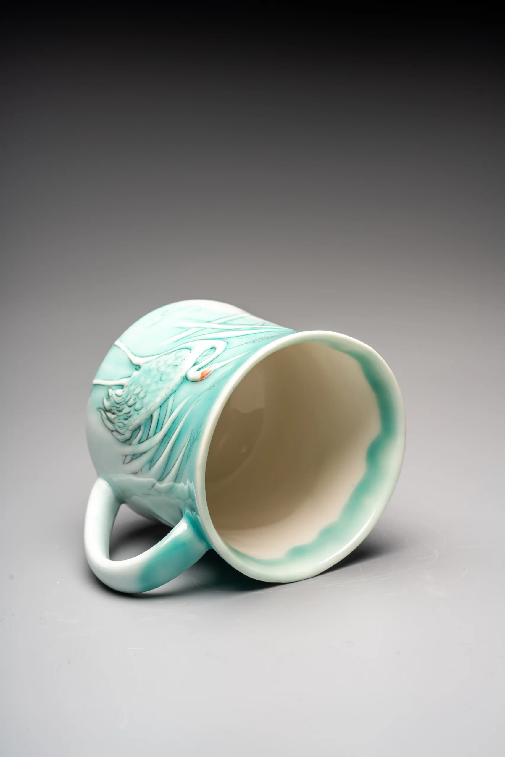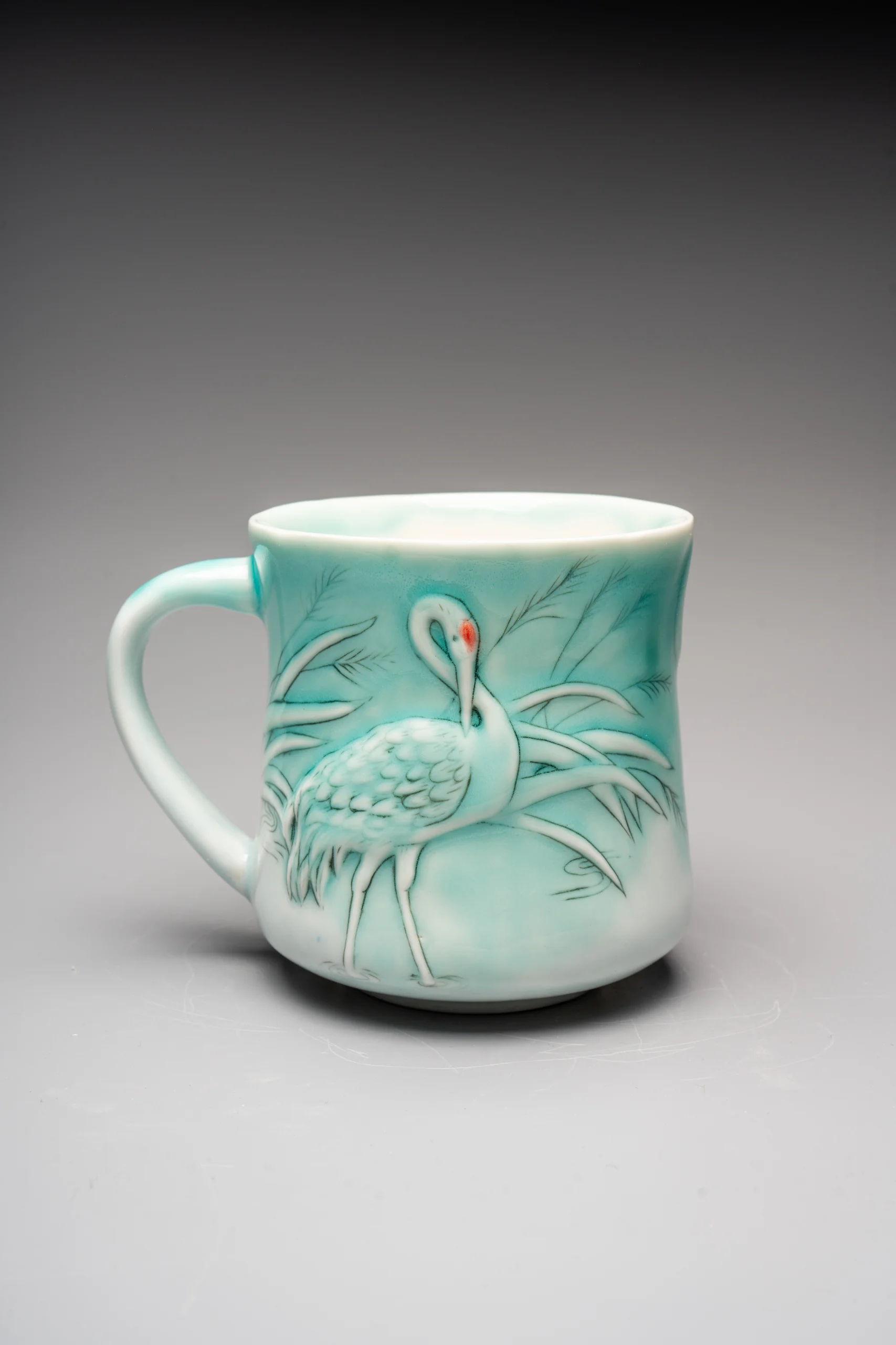 Кружка ручной работы Керамика Александры Пылиной «Журавли», бирюзовая, фарфор, 300 мл
