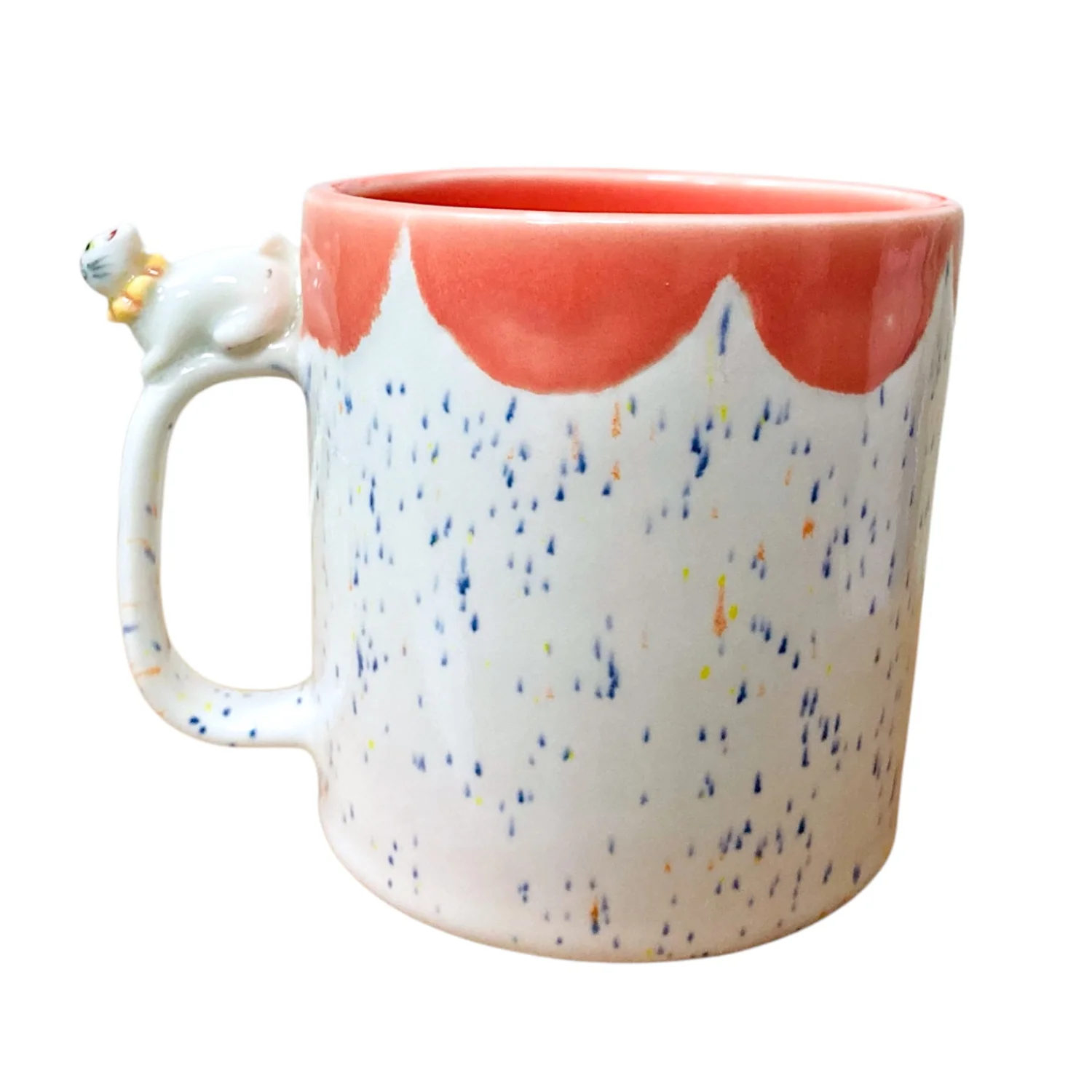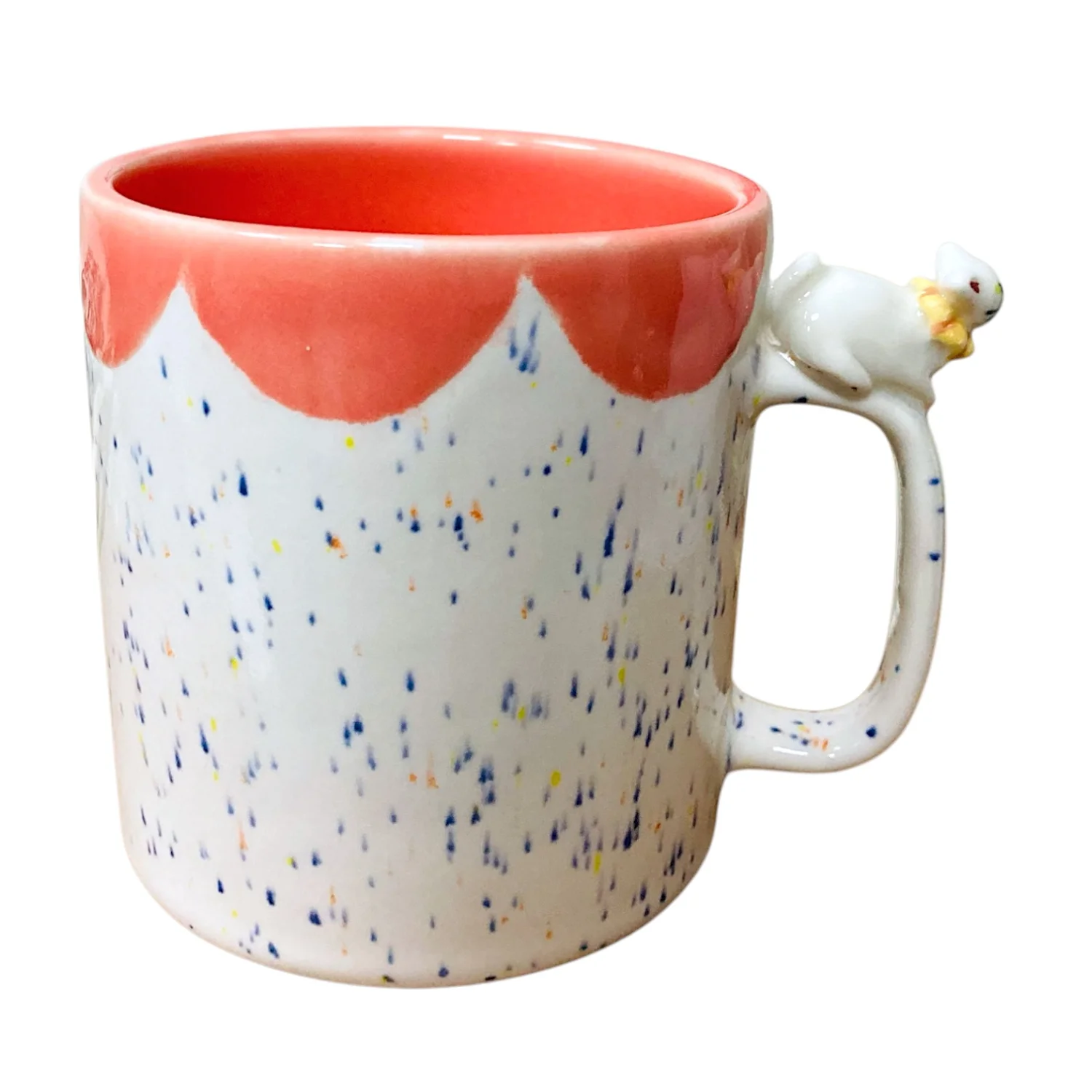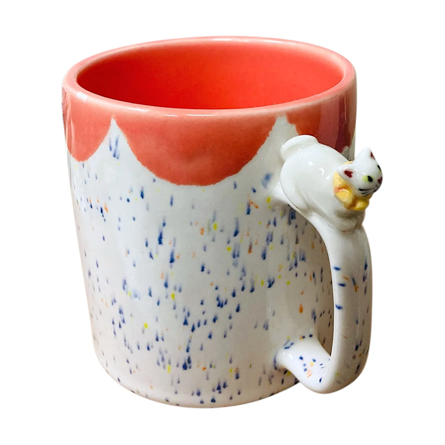 Кружка ручной работы Маковка с фигуркой на ручке «Котик», бело-розовая, 380 мл, цилиндр