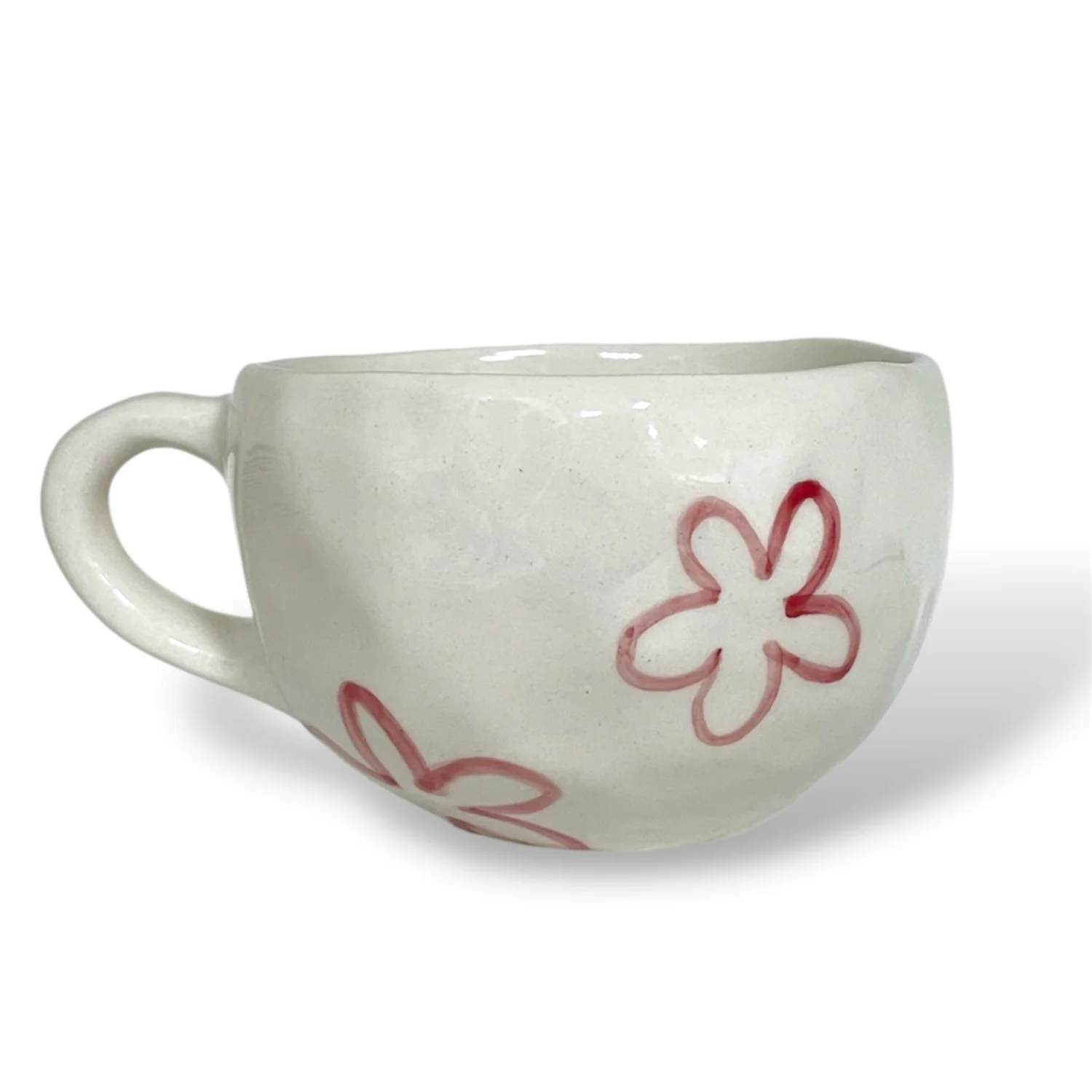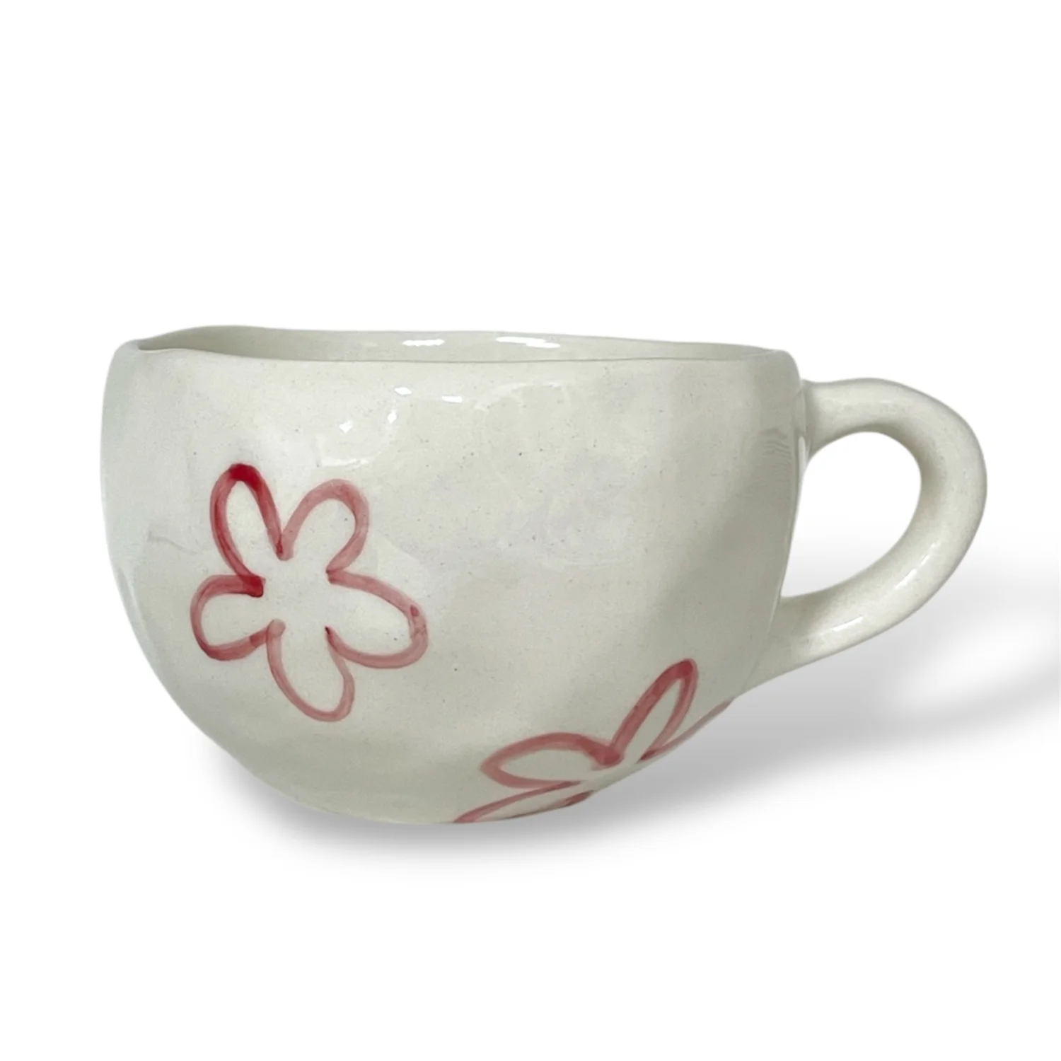 Кружка ручной работы Керамика Дарьи Карпиной «Цветочные контуры», белая, 350 мл