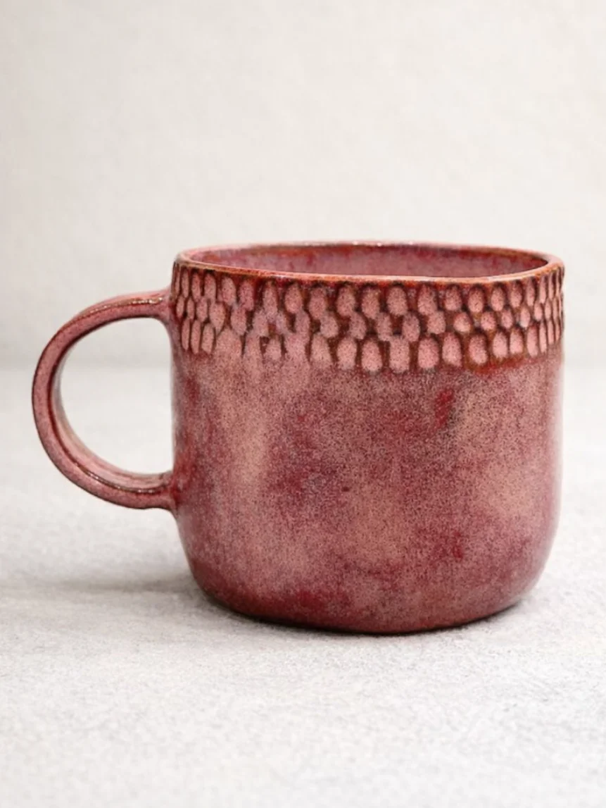 Кружка ручной работы Идеальное совпадение тёмно-розовая с узорами, керамика, 350 мл