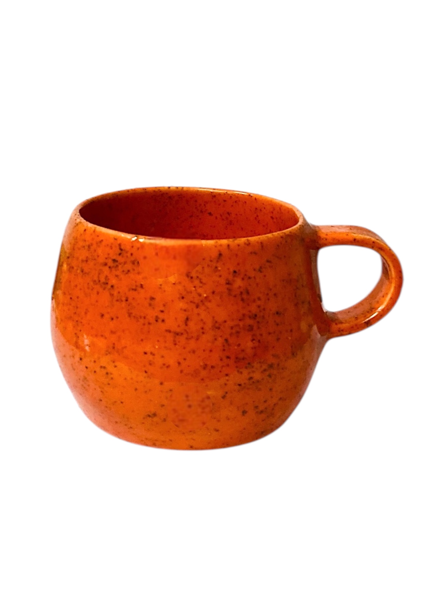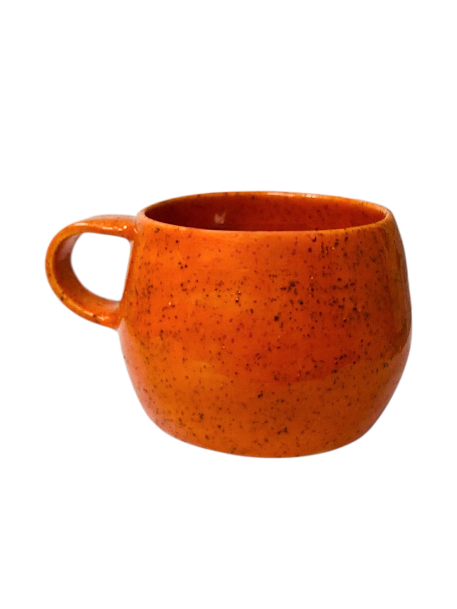 Кружка в сочном тыквенном цвете с черными крапинками станет отличным подарком для себя или любителя осени.