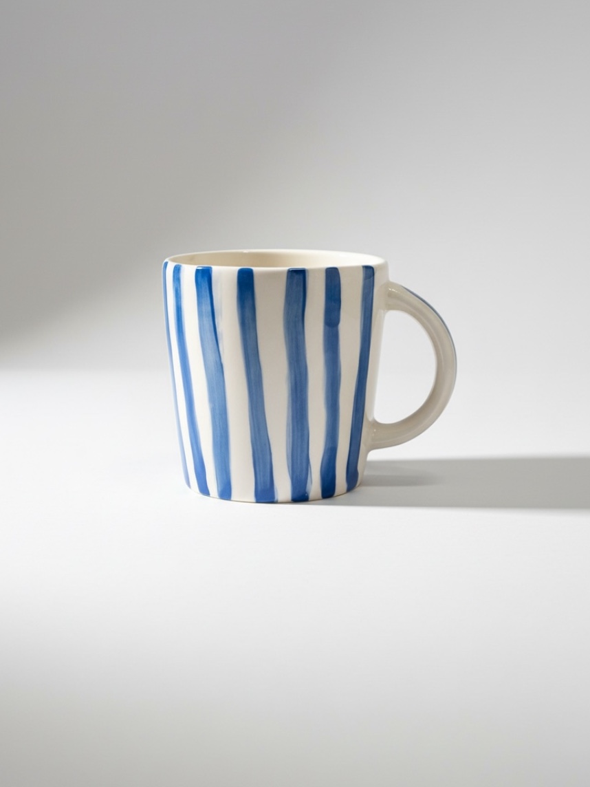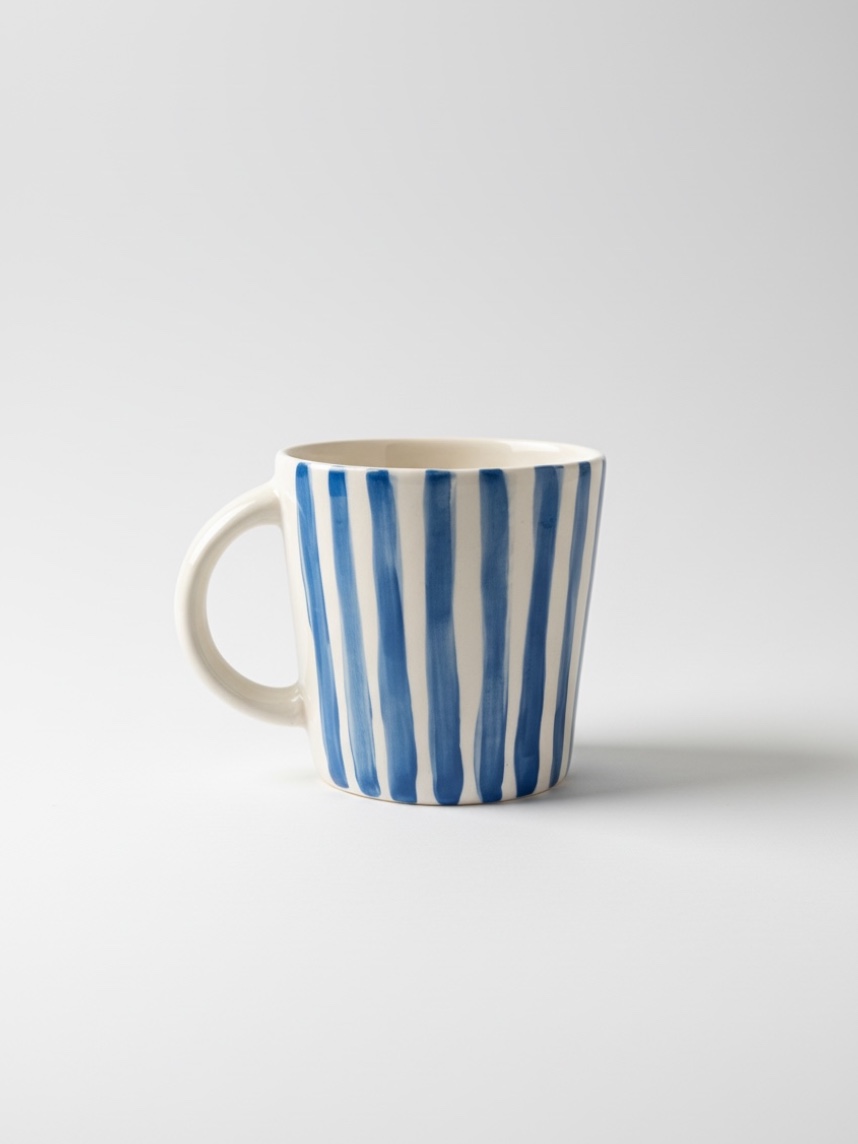 Кружка ручной работы в голубую полоску, керамика, 450 мл