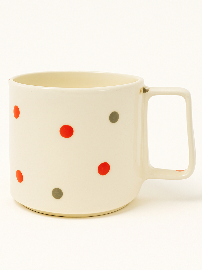 Керамическая кружка ручной работы белая в разноцветный горошек от петербургского бренда MayMood является прекрасным образцом сочетания функциональности и искусства.