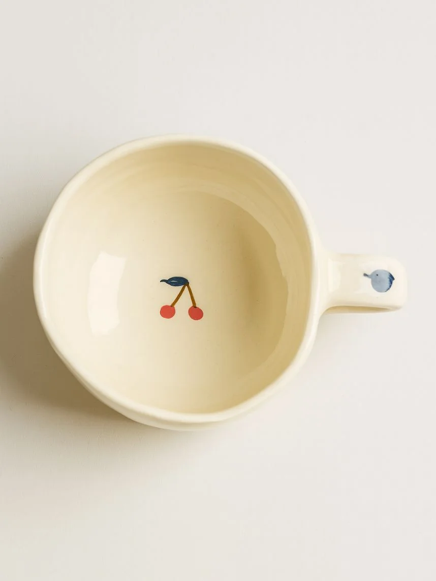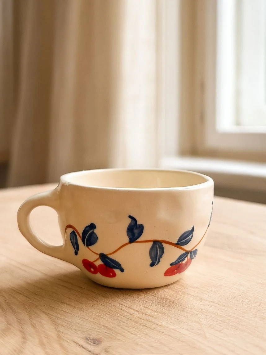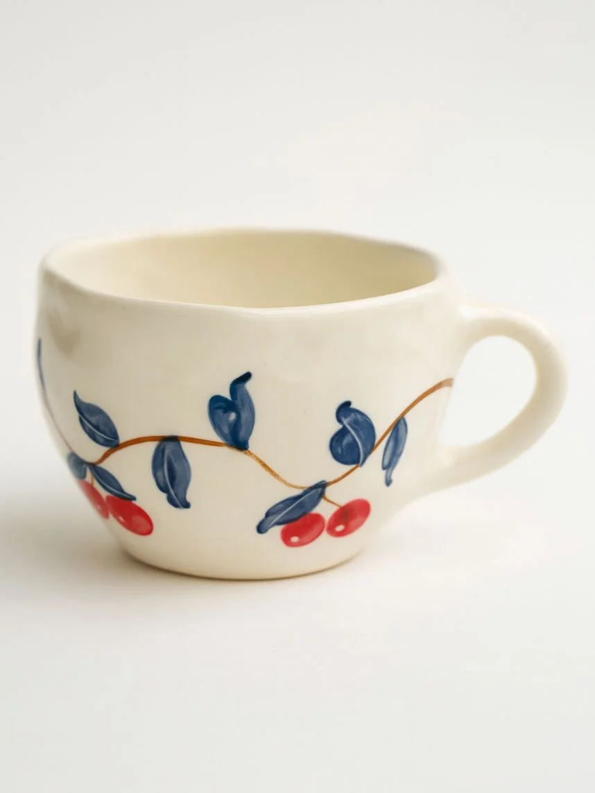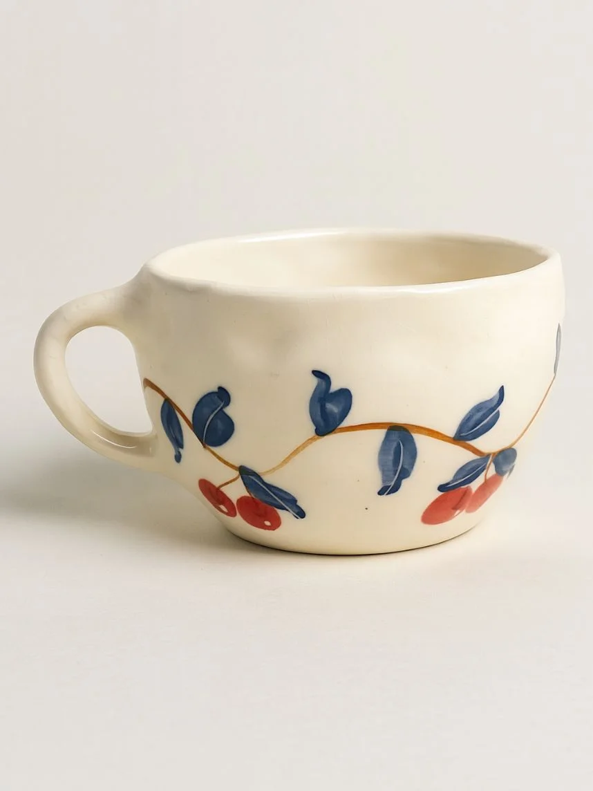 Яркие вишенки превращают каждое чаепитие в мгновение радости и уюта. Эта кружка — не просто посуда, это маленькое произведение искусства, которое наполняет день теплом, красотой и вдохновением к жизни.