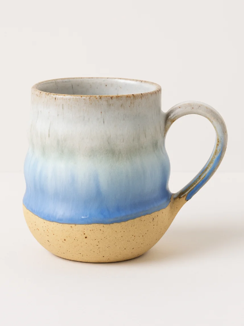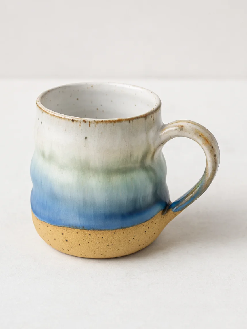 Кружка ручной работы волнистая, бело-синий градиент, керамика, 350 мл