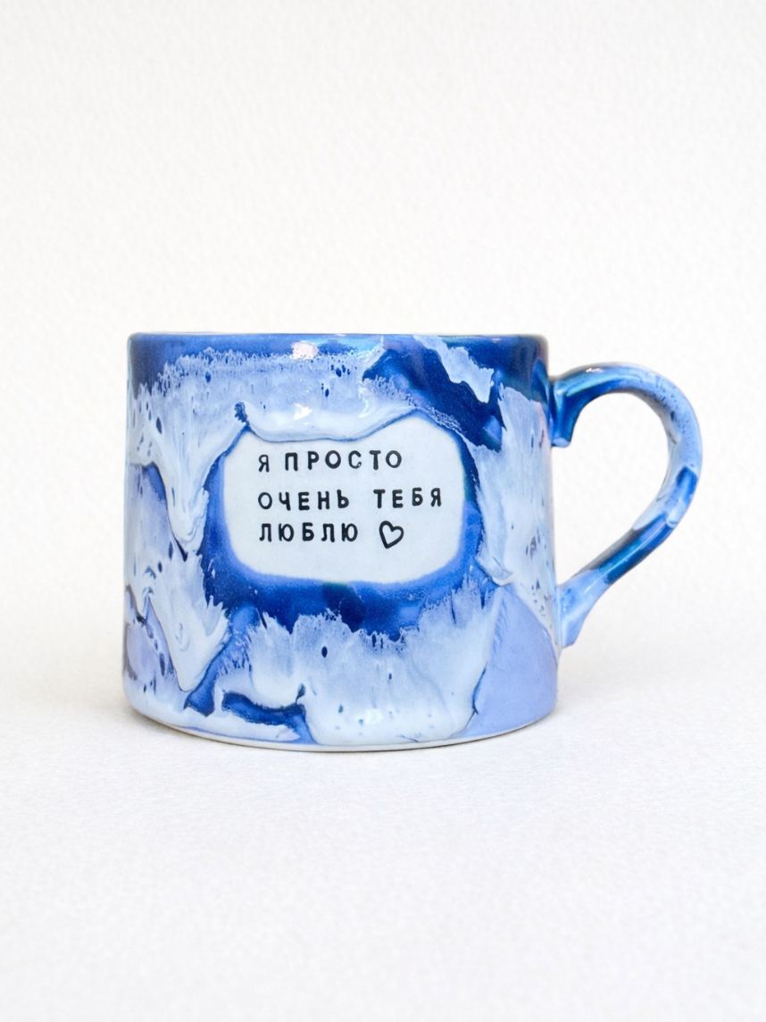 Кружка ручной работы NF ceramics «Я просто очень тебя люблю», синяя, керамика, 500 мл