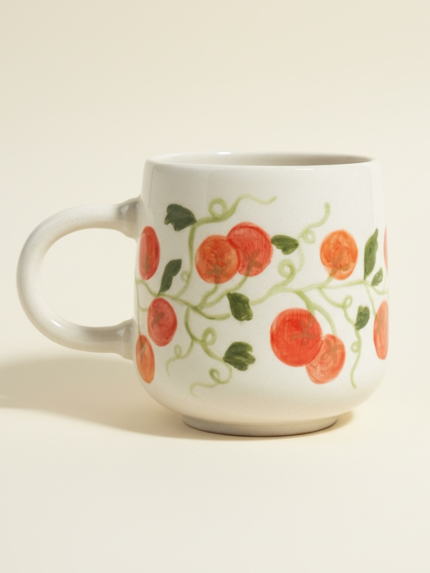 Керамическая кружка ручной работы Yellowscoop «Помидорки черри», объем 450 мл.