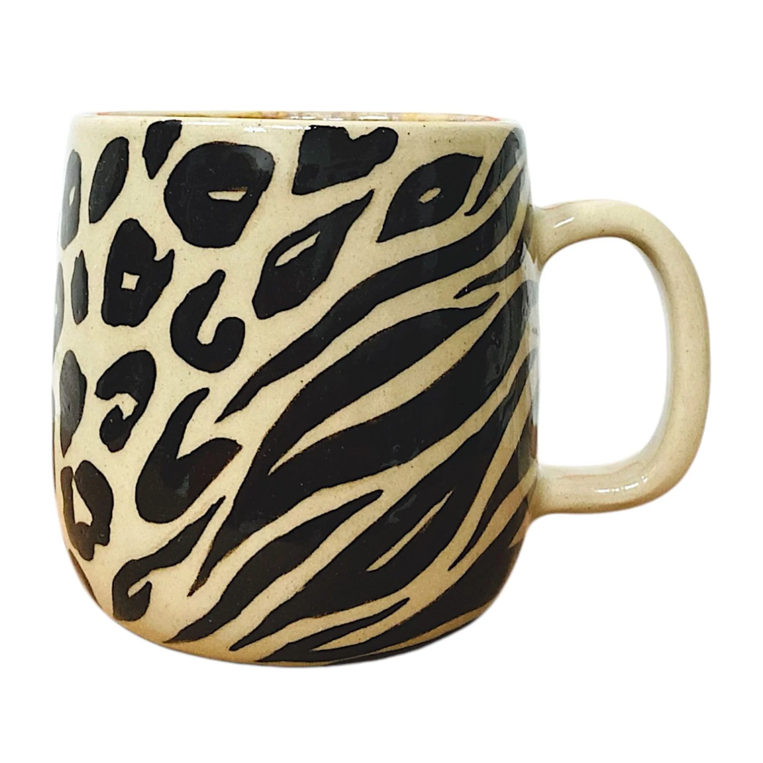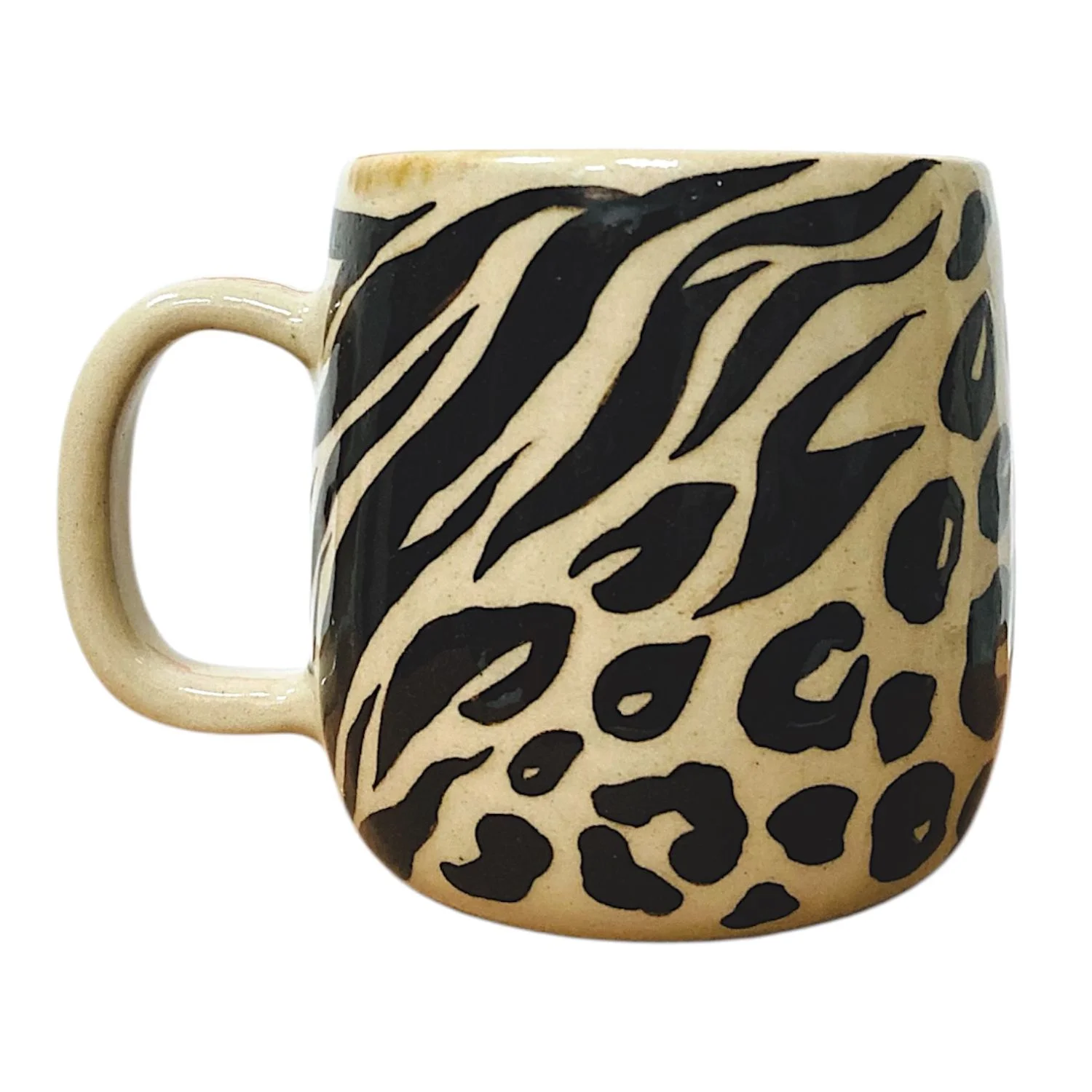 Кружка ручной работы ПинкФокс «Животный принт», бежевая, керамика