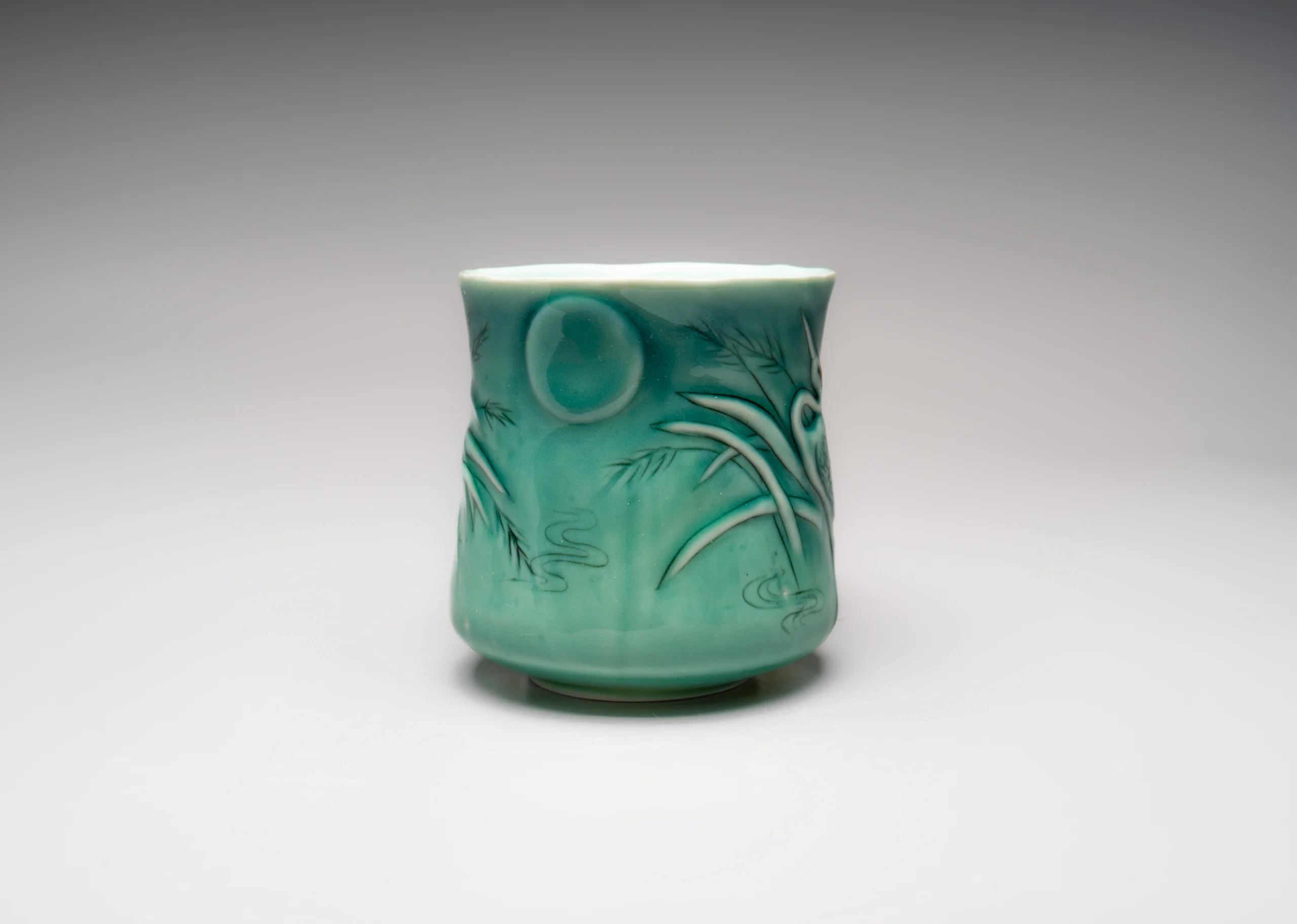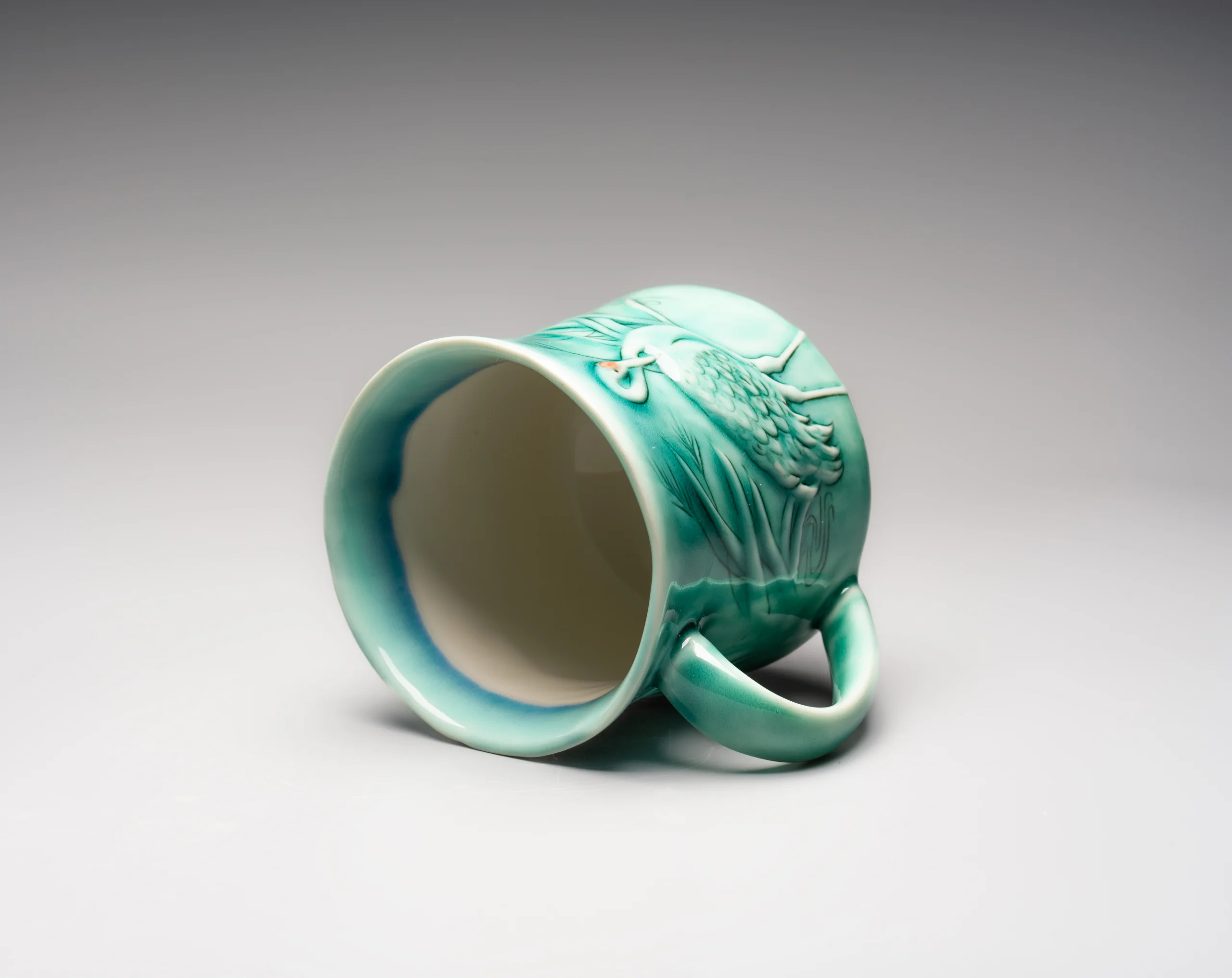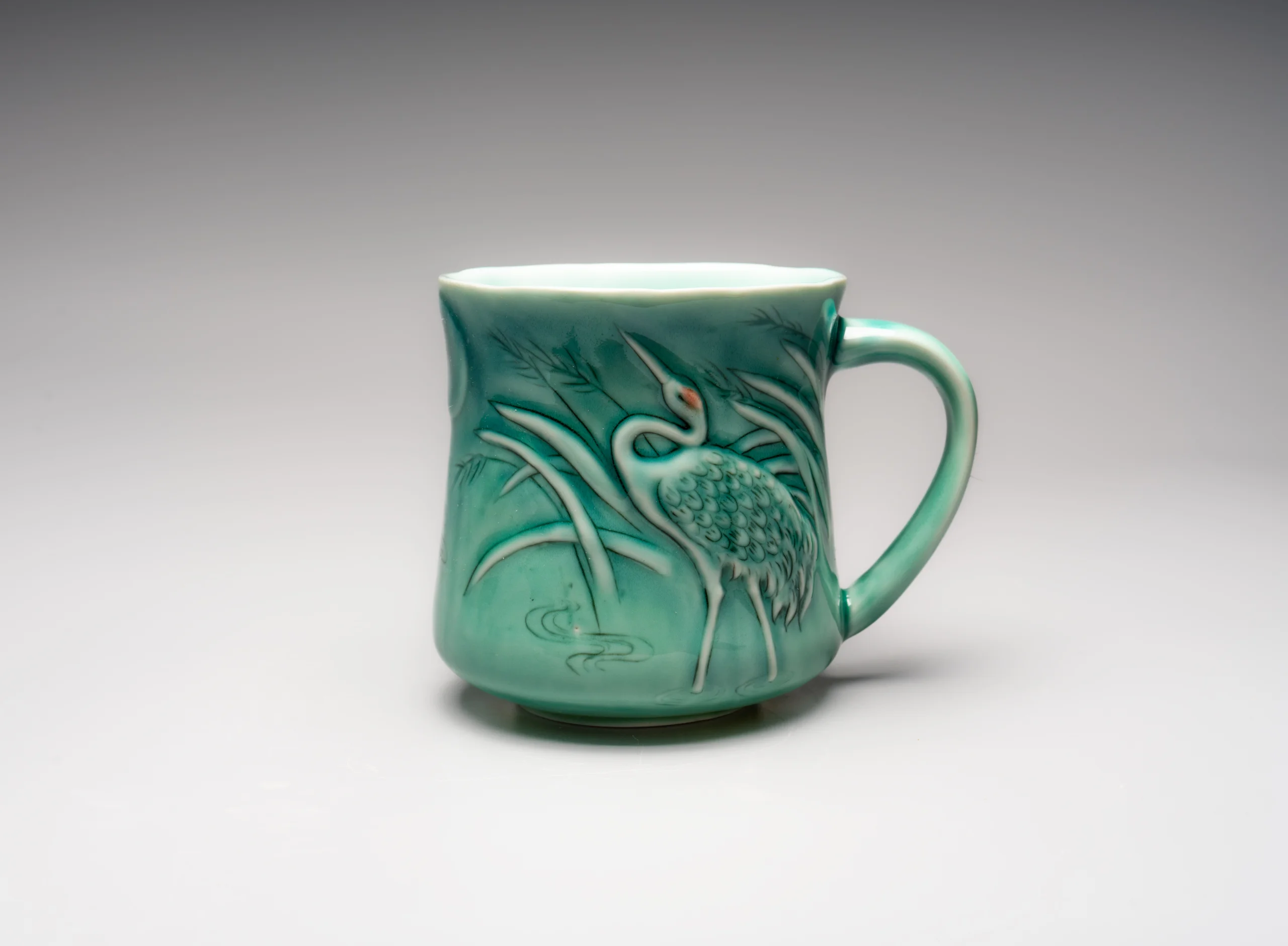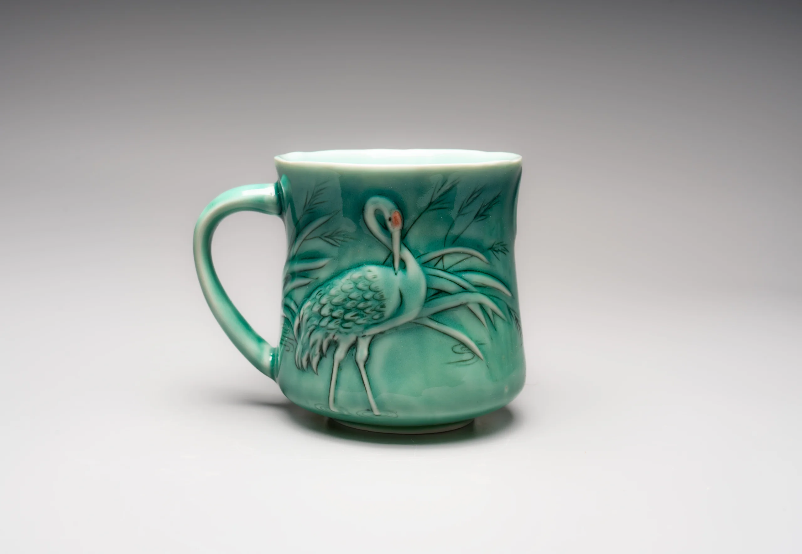 Кружка ручной работы Керамика Александры Пылиной «Журавли», зеленая, фарфор, 390 мл