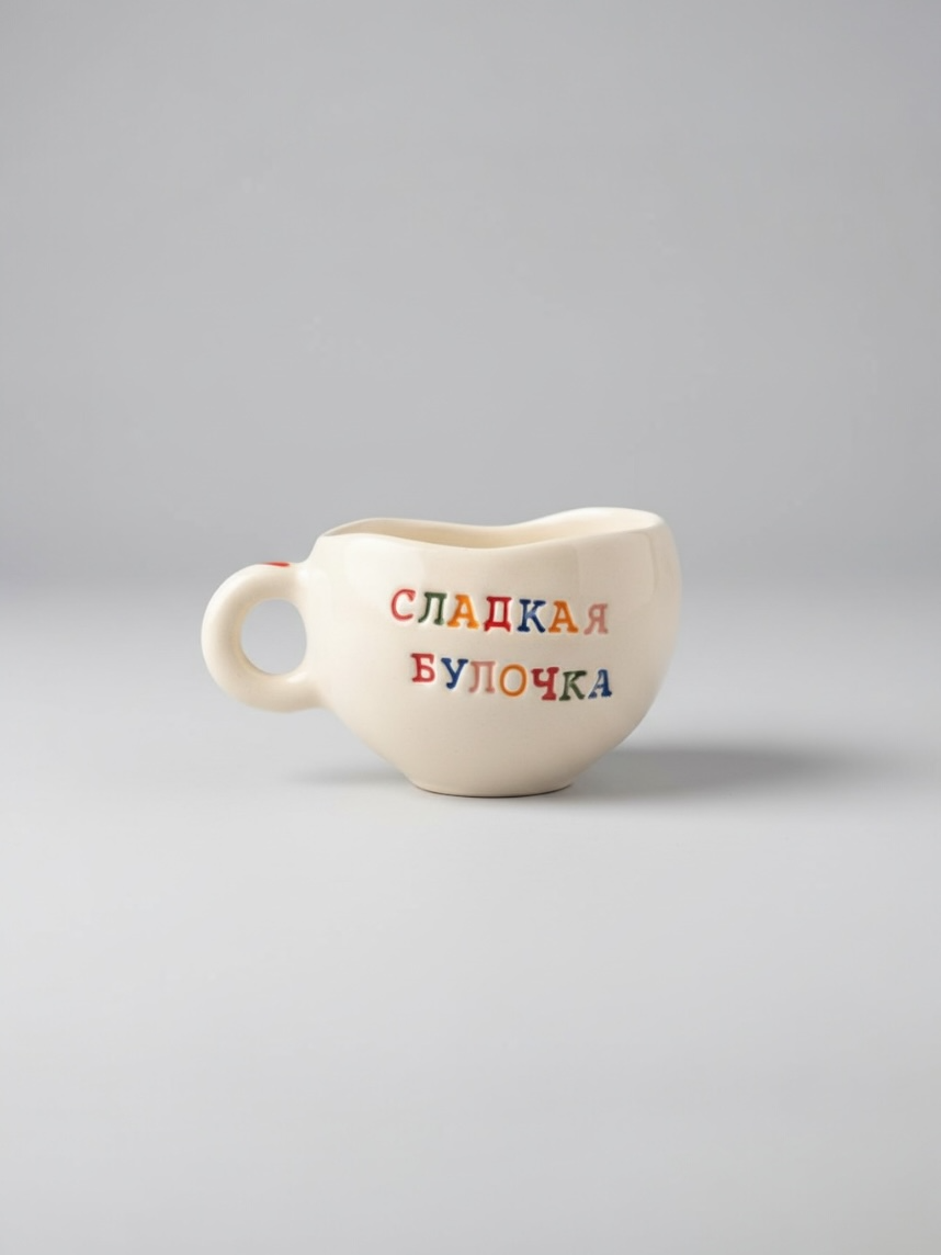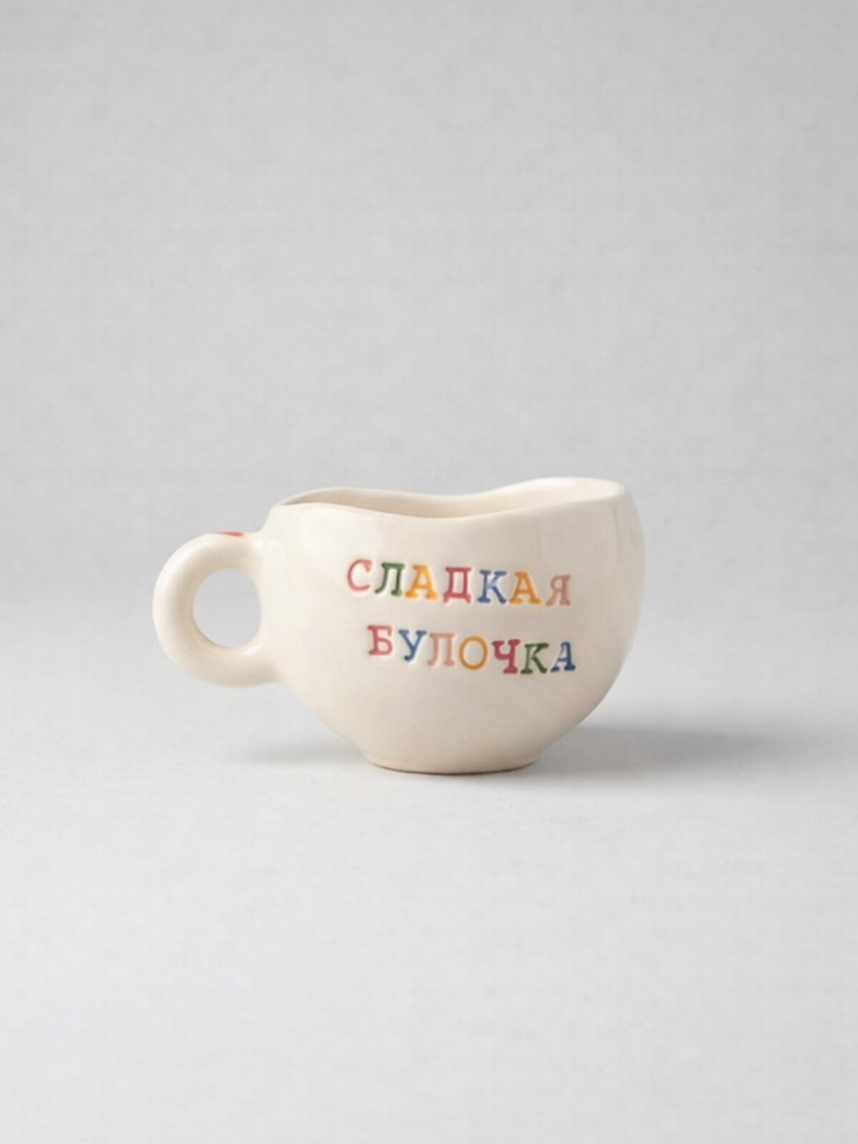 Кружка ручной работы с надписью «Сладкая булочка», керамика, 180 мл