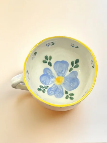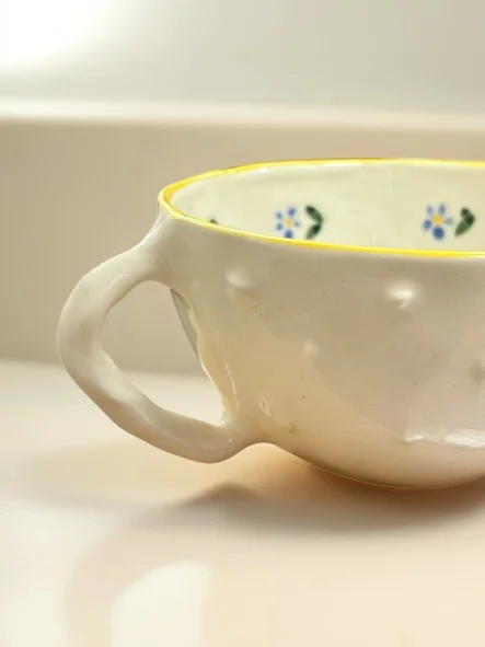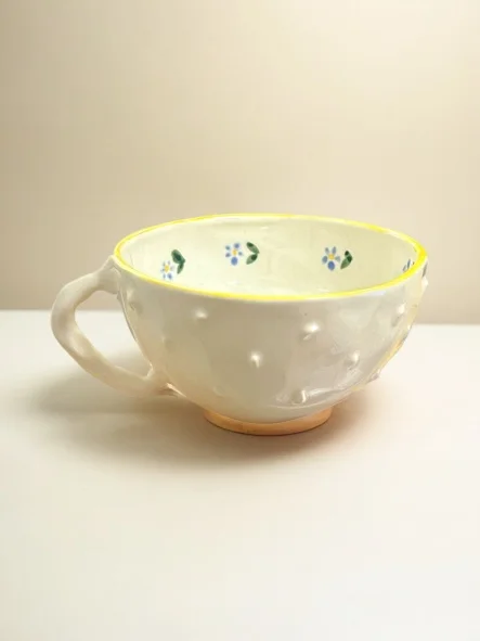 Кружка Быкова керамика с шипами и синими цветами, бело-жёлтая, керамика, 200 мл