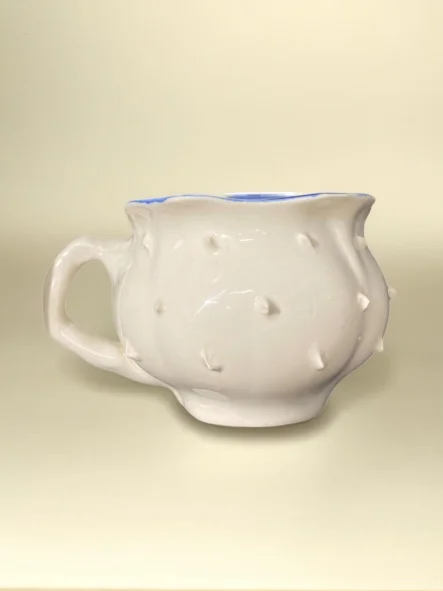 Элегантное сочетание плавных форм, гладкой глазури и кажущимися острыми шипов - всё это придаёт этой небольшой кружке неповторимый шарм.