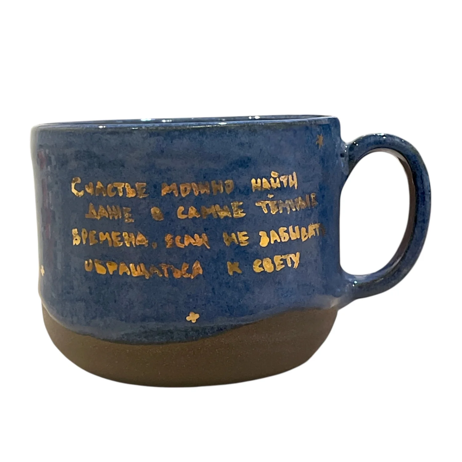 Кружка «Счастье можно найти даже в самые тёмные времена», синяя, керамика, 350 мл