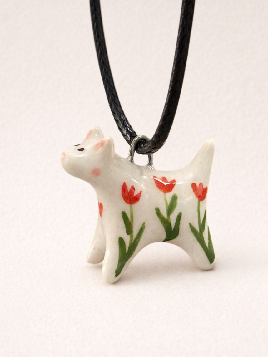 Милый керамический кулон ручной работы «‎Котик в тюльпанчик».