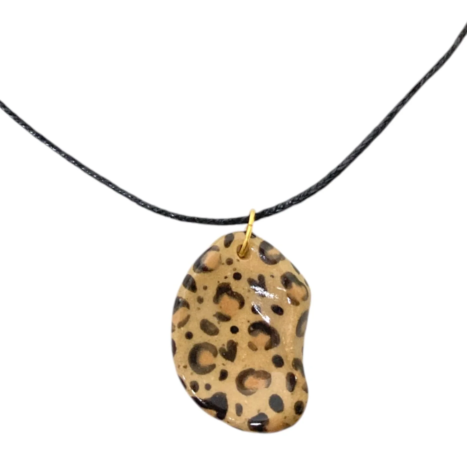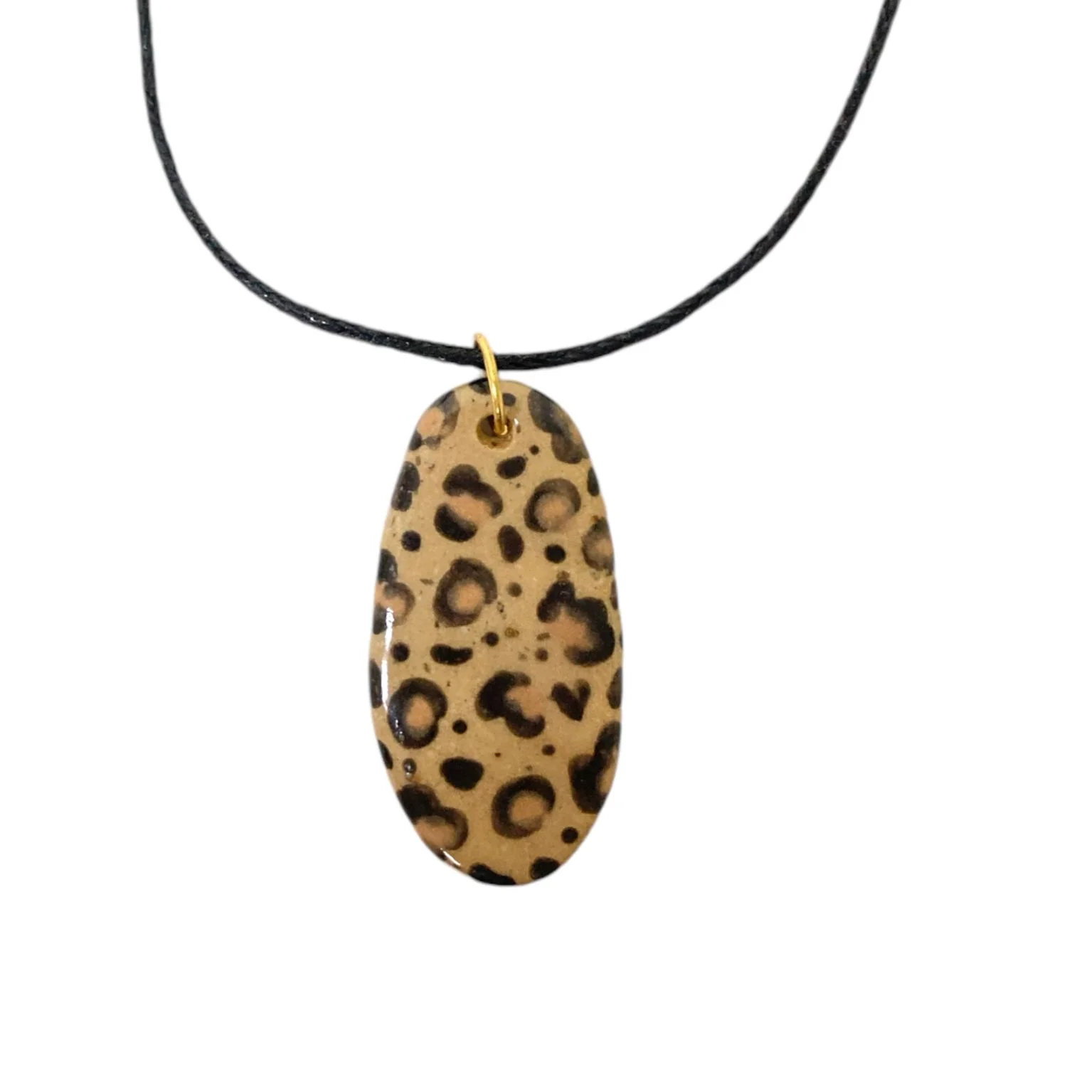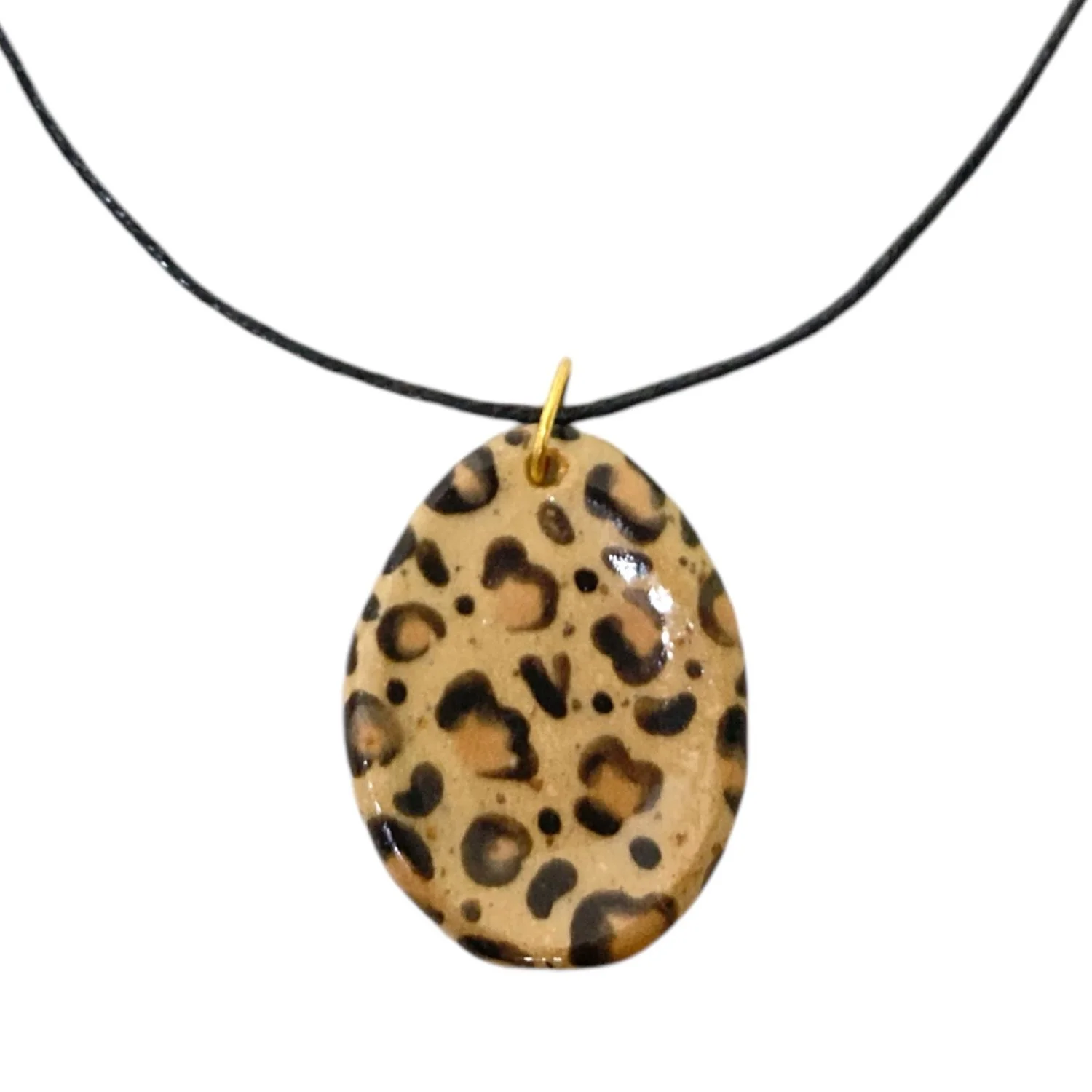 Кулон ручной работы из керамики «‎Лео»‎ на хлопковом черном регулируемом шнурке.