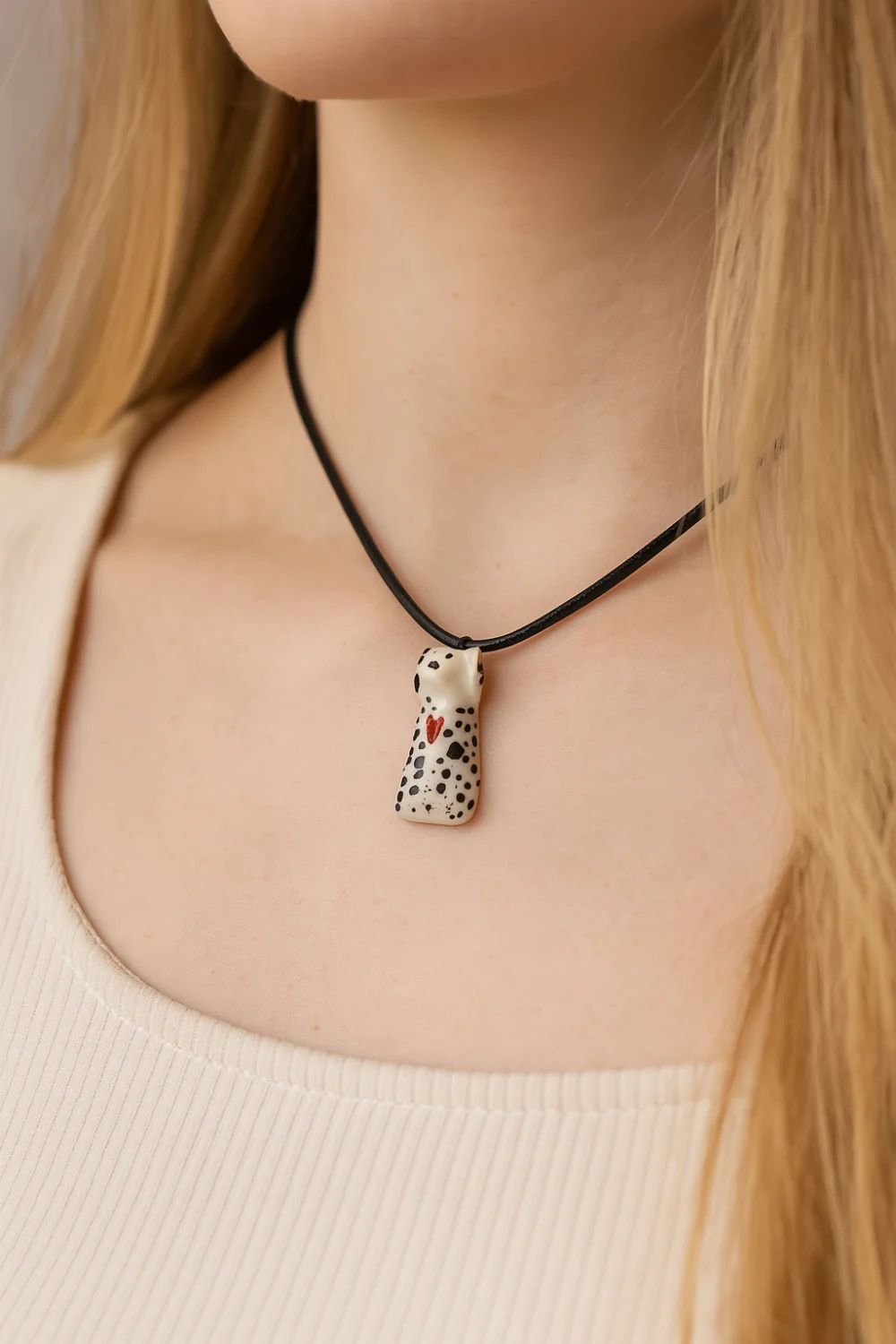 Милый керамический кулон ручной работы «‎Далматинец сидящий»‎‎.