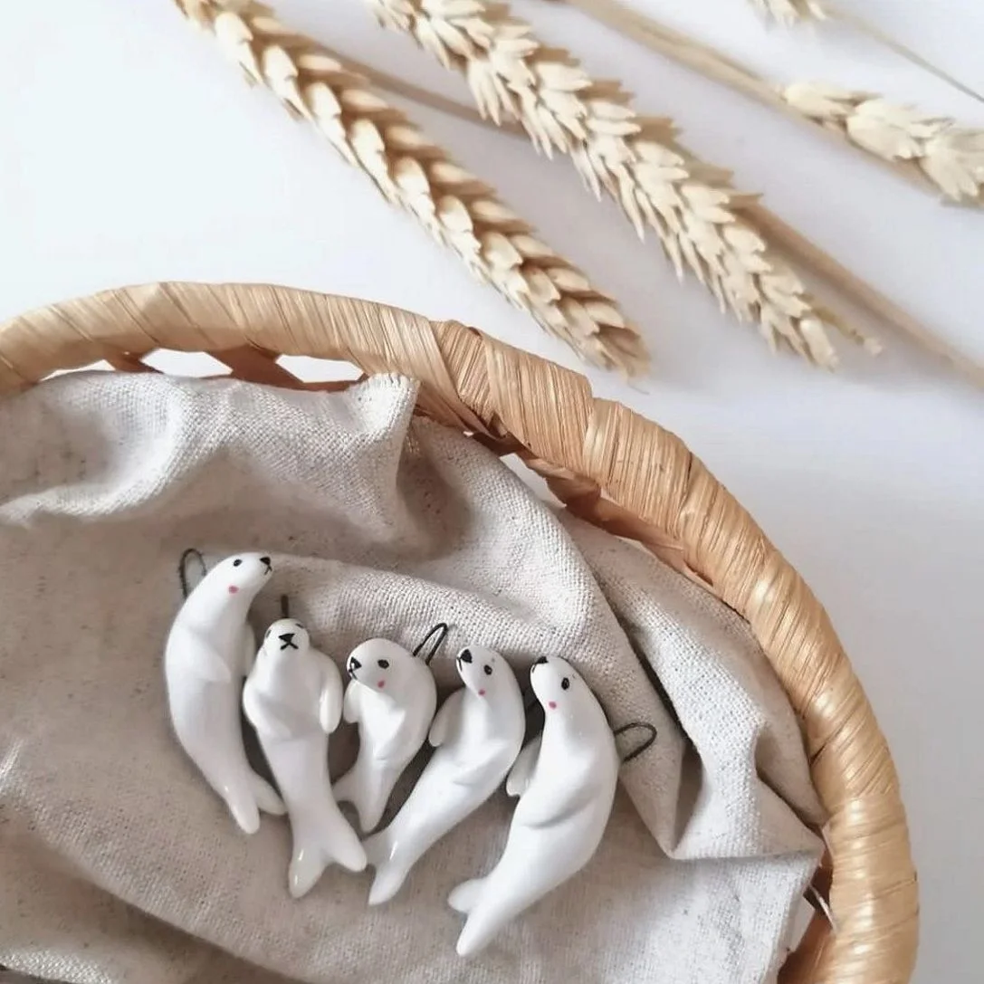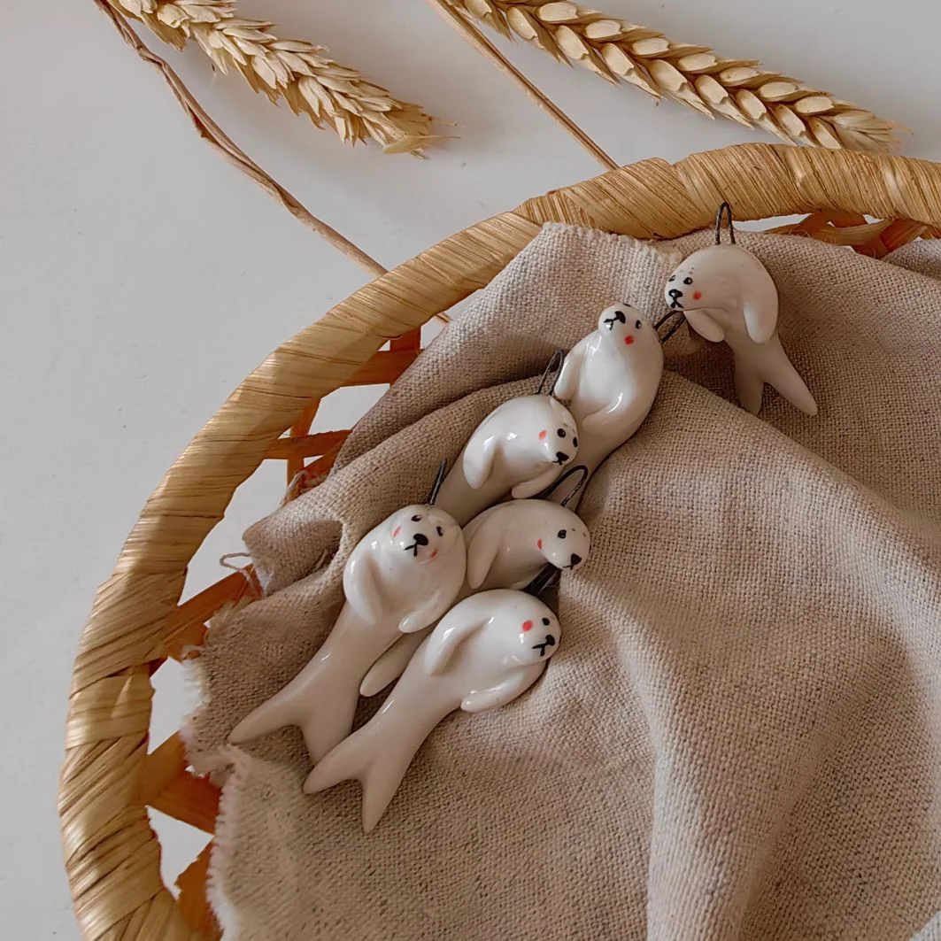 Подвеска ручной работы Боттери керамика «‎Тюлень»‎, белая, керамика