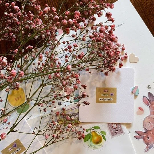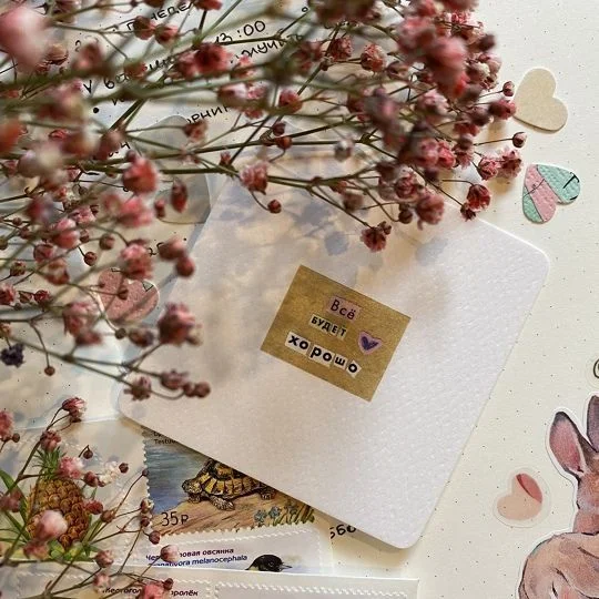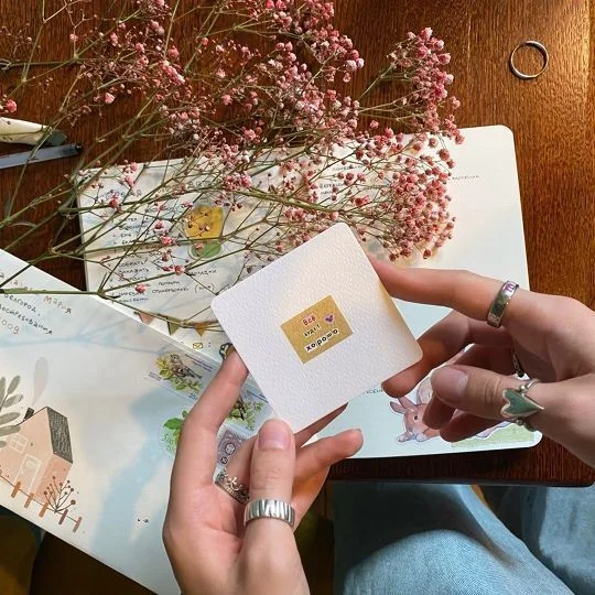 Размер 7,5х7,5 см, оборот пустой, можно оставить свои пожелания.
