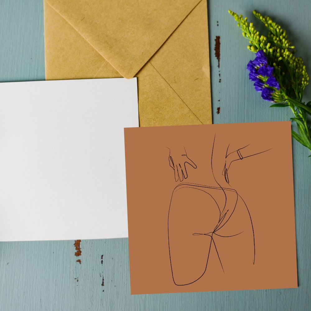 Квадратная открытка с силуэтом в нюдовых цветах. Стильный минималистичный рисунок и свободное место для подписи на обратной стороне делают открытку идеальным дополнением к любому подарку. Открытка упакована в индивидуальный крафтовый конверт. Печать выполнена на матовом картоне плотностью 350 г/м. Размер открытки: 10*10 см.