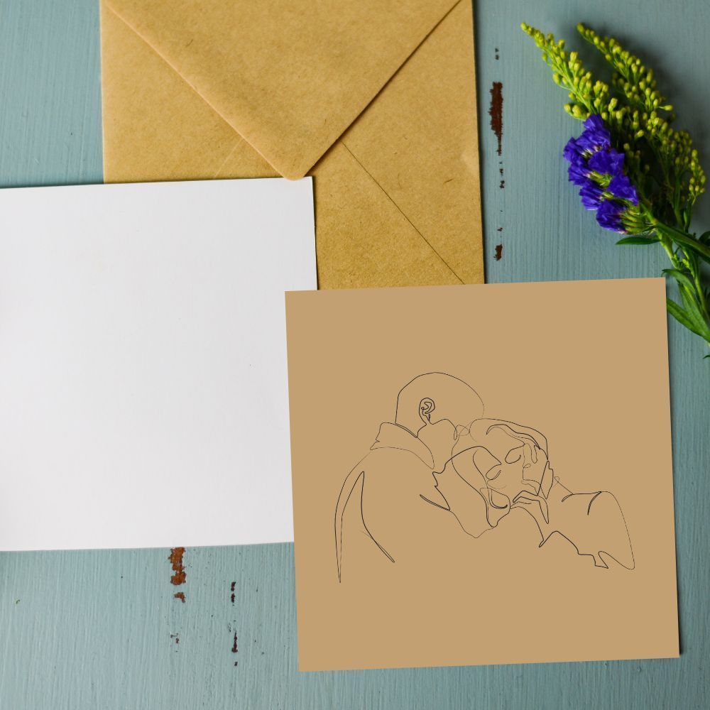 Квадратная открытка с силуэтом в нюдовых цветах. Стильный минималистичный рисунок и свободное место для подписи на обратной стороне делают открытку идеальным дополнением к любому подарку. Открытка упакована в индивидуальный крафтовый конверт. Печать выполнена на матовом картоне плотностью 350 г/м. Размер открытки: 10*10 см.