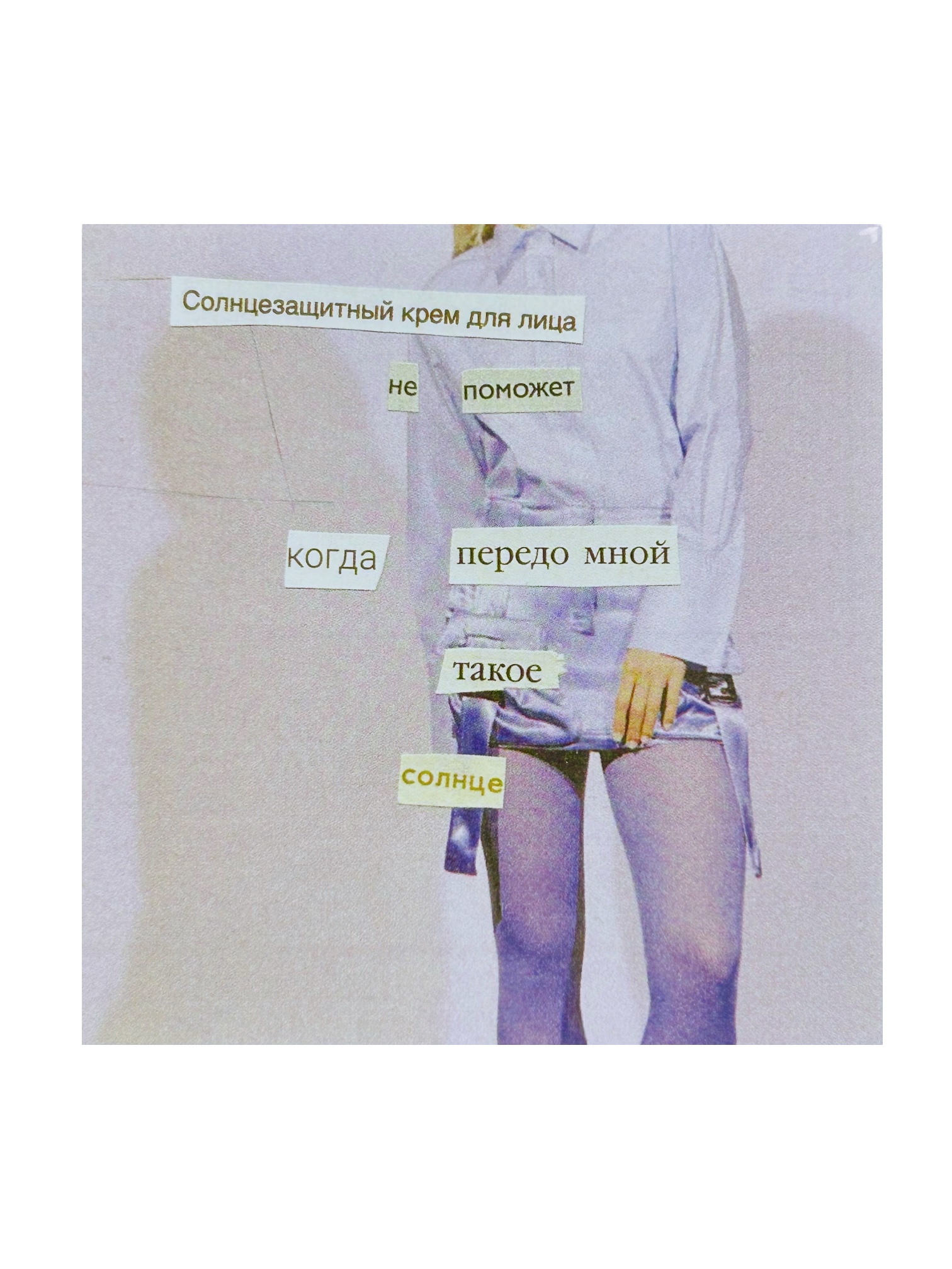 На ней размещена надпись «Передо мной такое солнце», выполненная в выразительном стиле, которая вызывает ощущение тепла, позитива и внутренней силы.