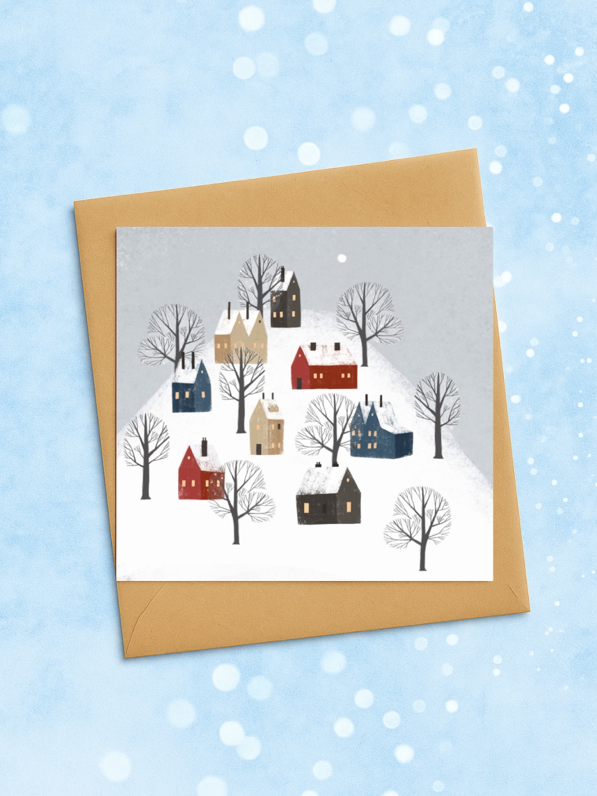 Квадратная открытка на зимнюю тематику. Стильный минималистичный рисунок и свободное место для подписи на обратной стороне делают открытку идеальным дополнением к любому подарку. Открытка упакована в индивидуальный крафтовый конверт. Печать выполнена на матовом картоне плотностью 300 г/м. Размер открытки: 10*10 см.
