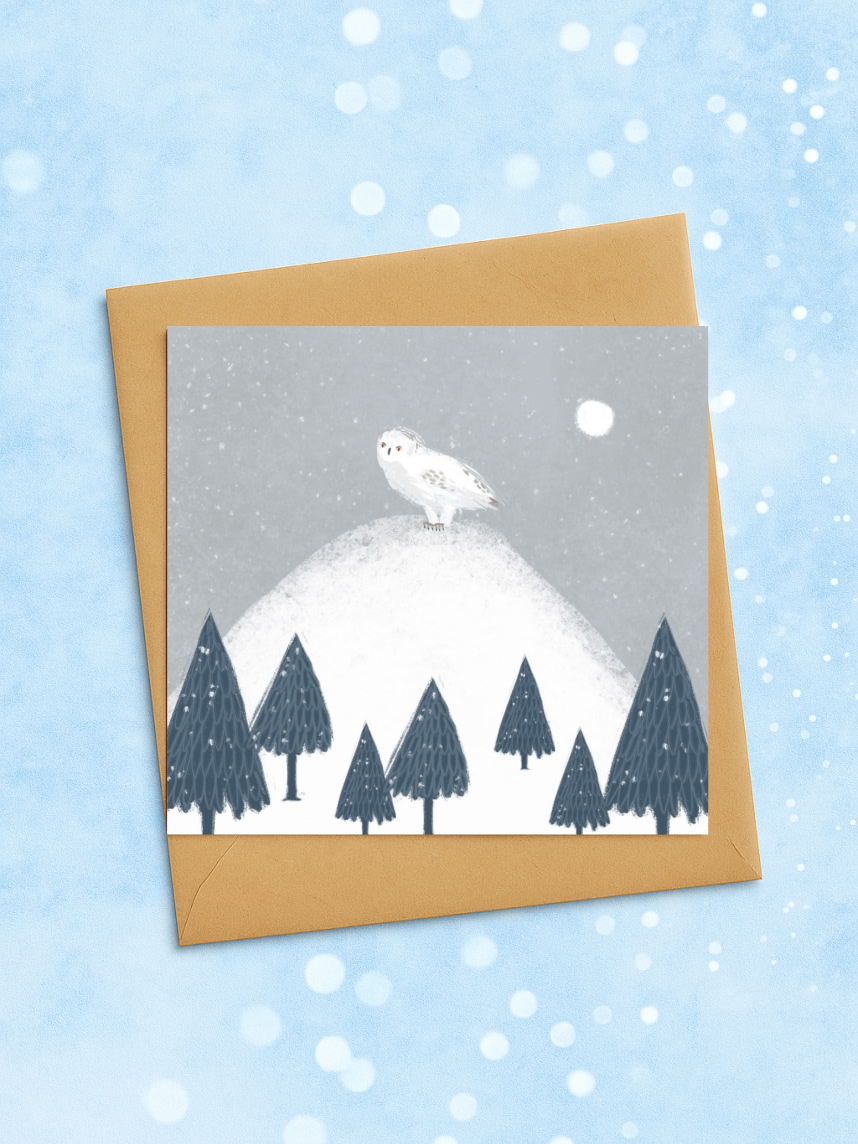 Квадратная открытка на зимнюю тематику. Стильный минималистичный рисунок и свободное место для подписи на обратной стороне делают открытку идеальным дополнением к любому подарку. Открытка упакована в индивидуальный крафтовый конверт. Печать выполнена на матовом картоне плотностью 300 г/м. Размер открытки: 10*10 см.