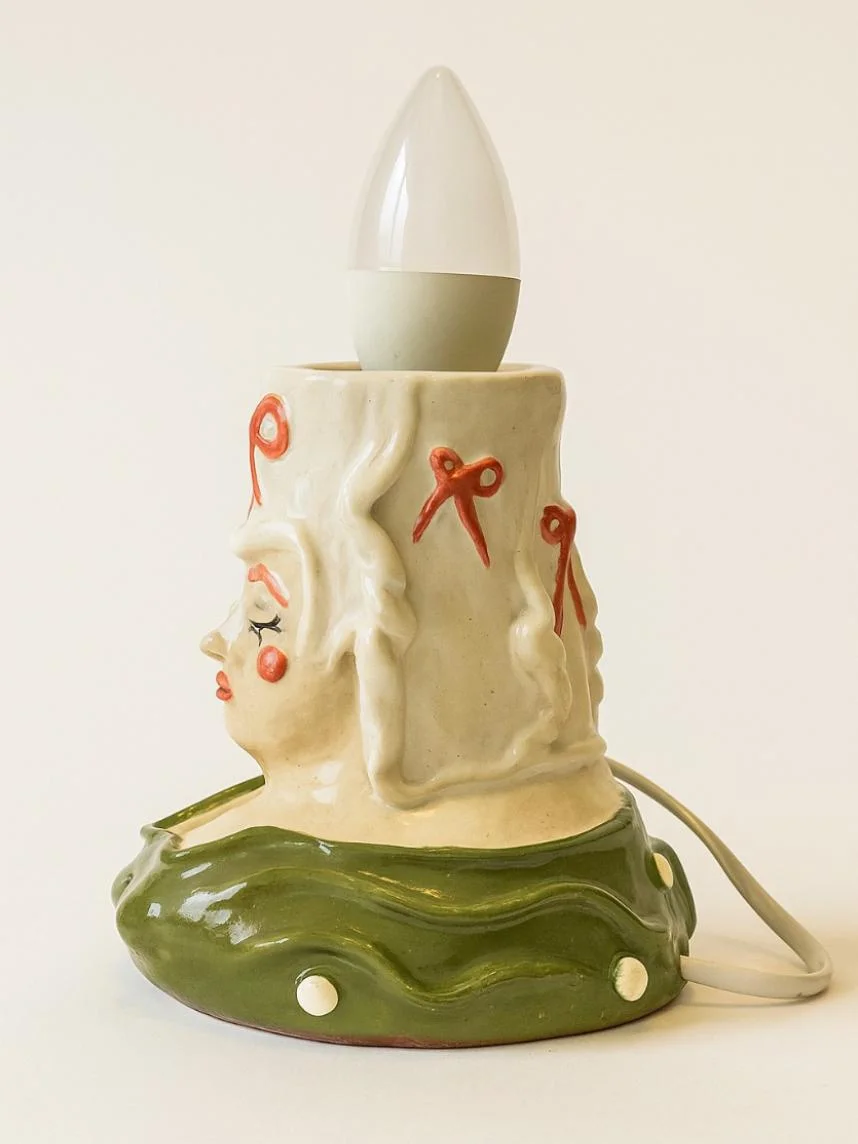 Лампа в форме дамы в парике из керамики ручной работы от бренда RiRi ceramics.