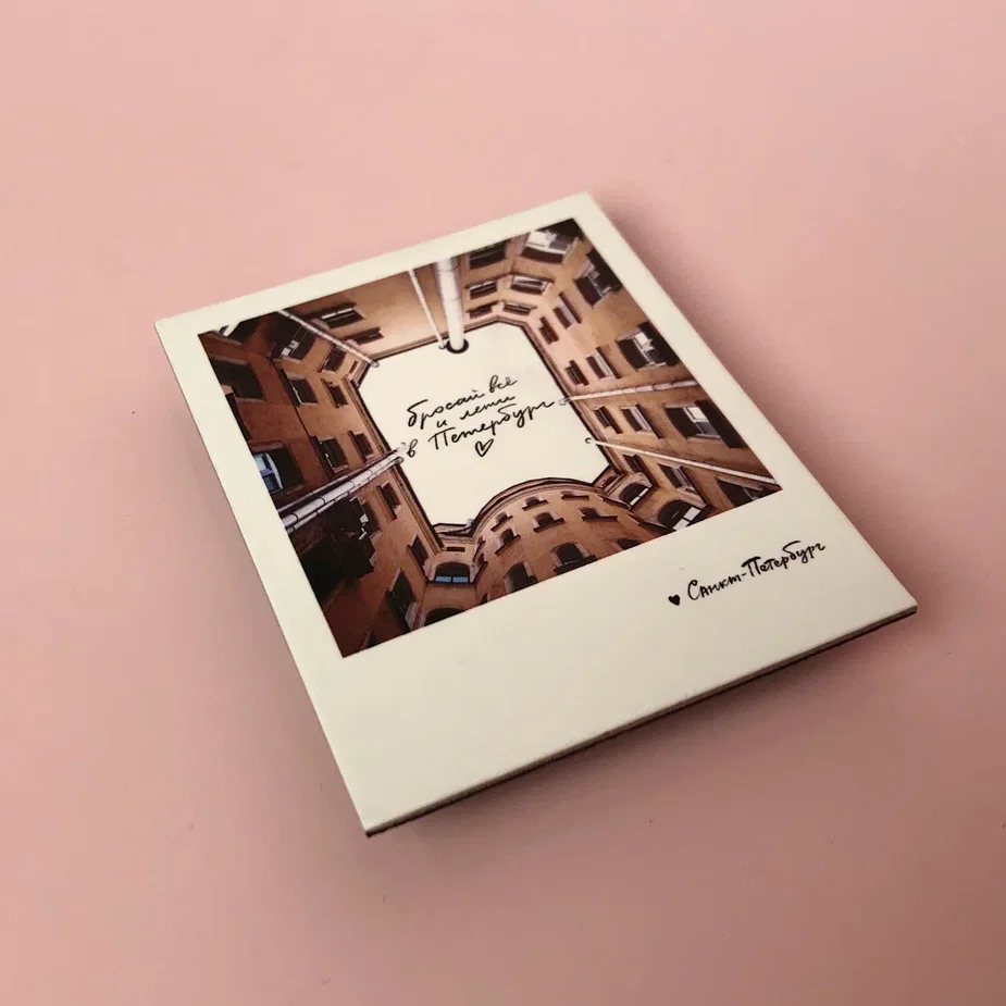 У нас вы найдете большой выбор магнитов из серии Полароид. В ней каждый найдет для себя самый запоминающийся вид города, будь это речной трамвайчик, идущий по водам Фонтанки или грандиозный Исаакиевский собор в окружении грозовых туч.