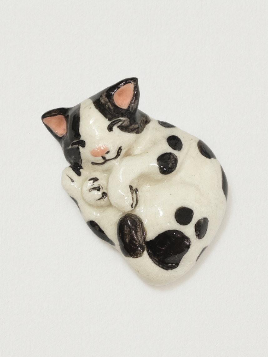Керамический магнит выполнен в виде спящего котика. Этот милый аксессуар добавит уюта в ваш дом и станет отличным подарком для любителей животных. Крепко держится на металлической поверхности благодаря своей магнитной основе.