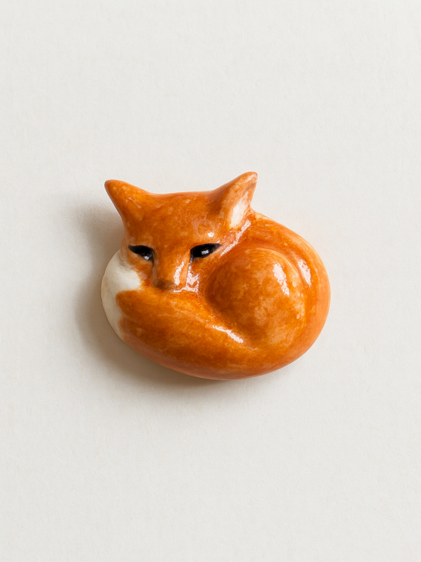 Магнит керамический, ручной работы «Спящая лисичка». Производитель - московский бренд «Mama Cherepaha».