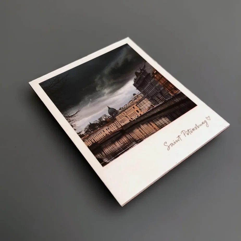 У нас вы найдете большой выбор магнитов из серии Полароид. В ней каждый найдет для себя самый запоминающийся вид города, будь это речной трамвайчик, идущий по водам Фонтанки или грандиозный Исаакиевский собор в окружении грозовых туч.