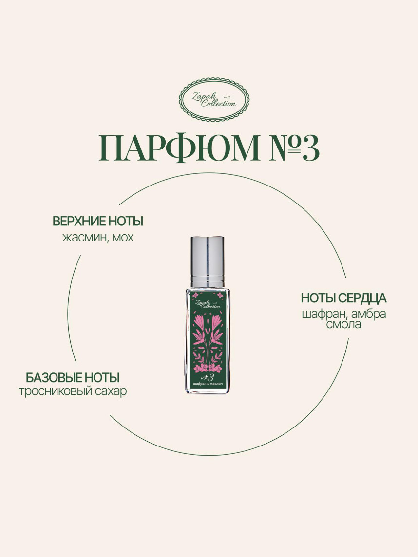 Масляные духи «№3 Шафран, Жасмин», 6 мл