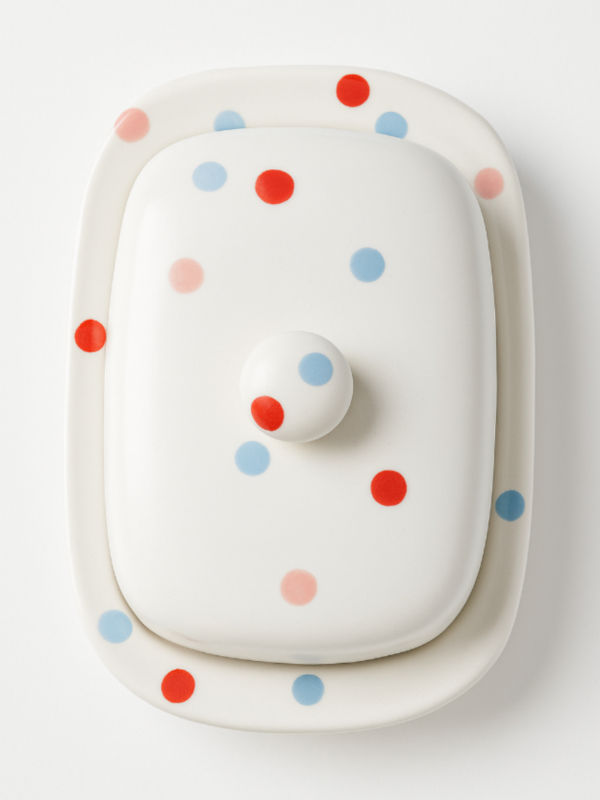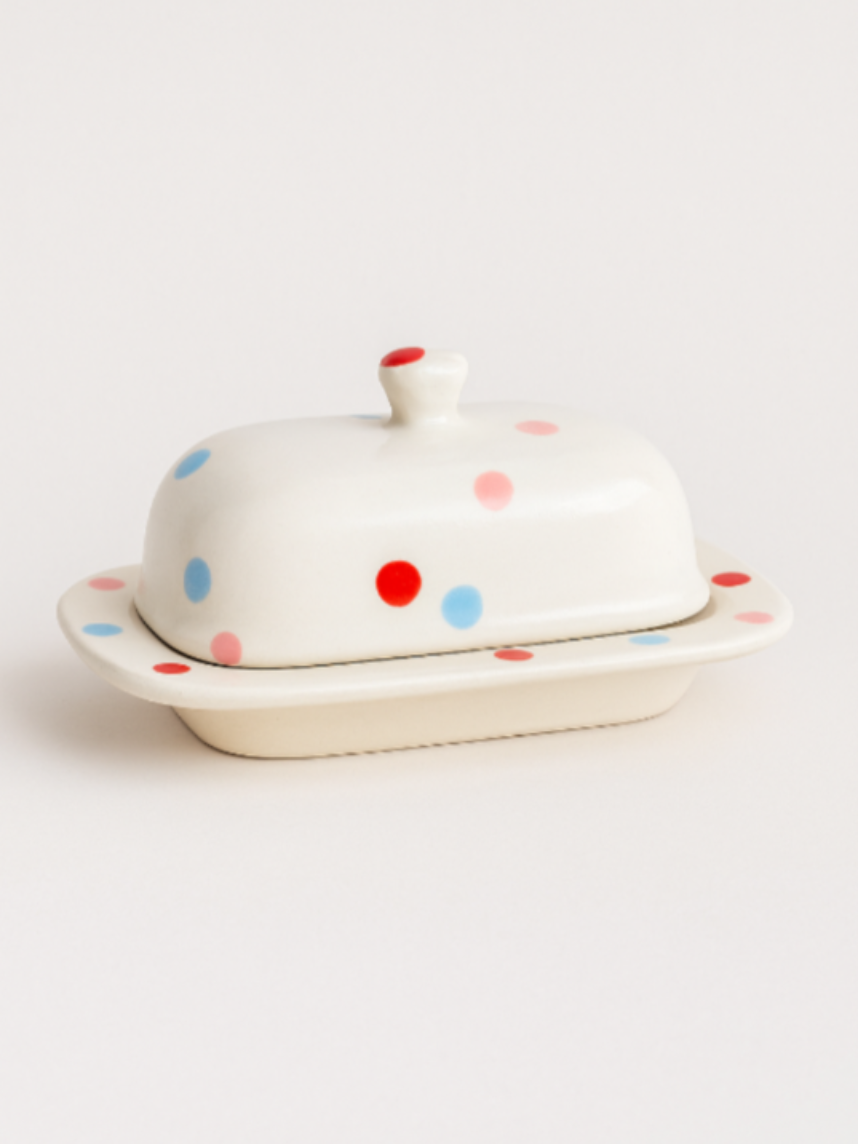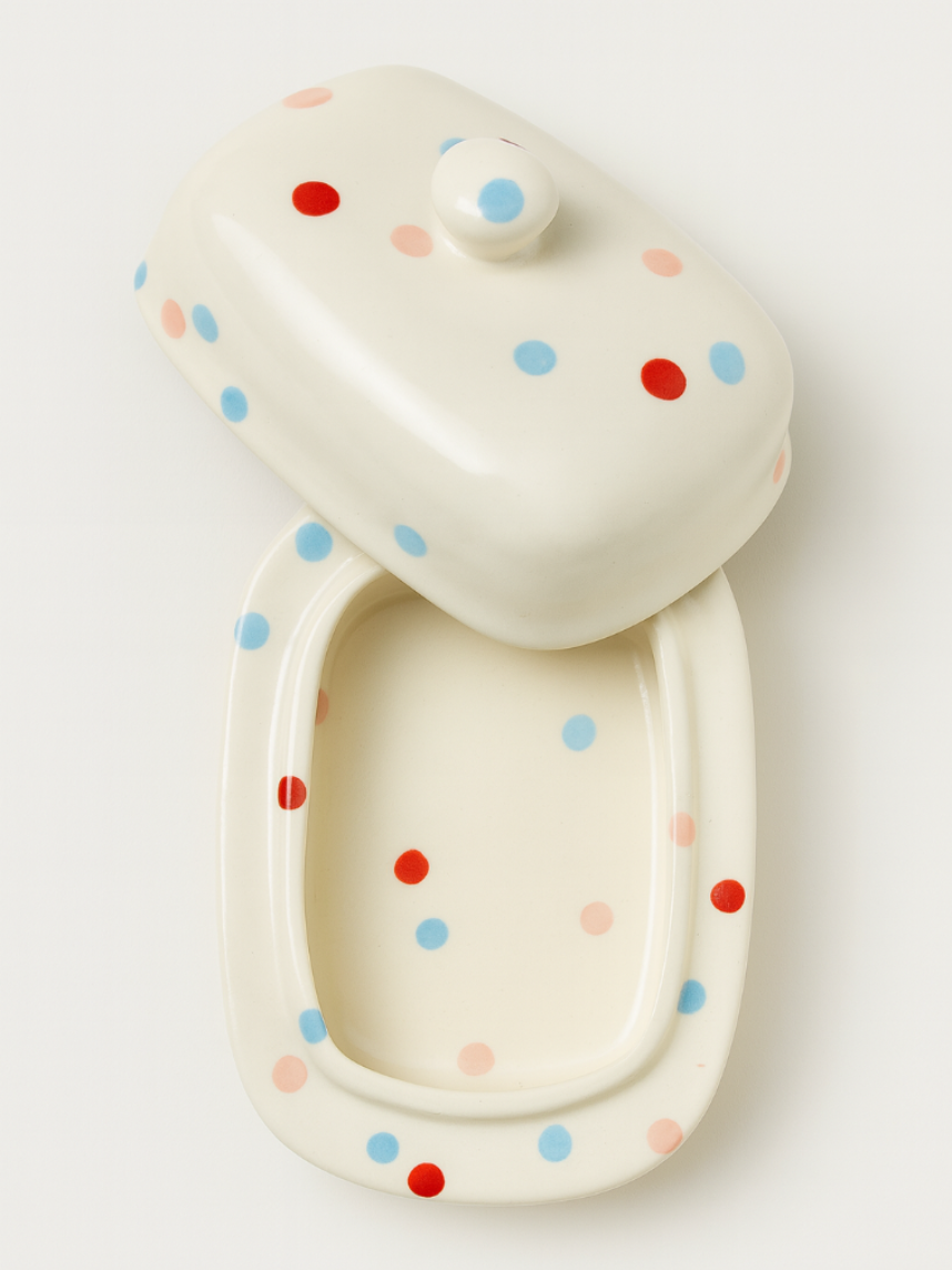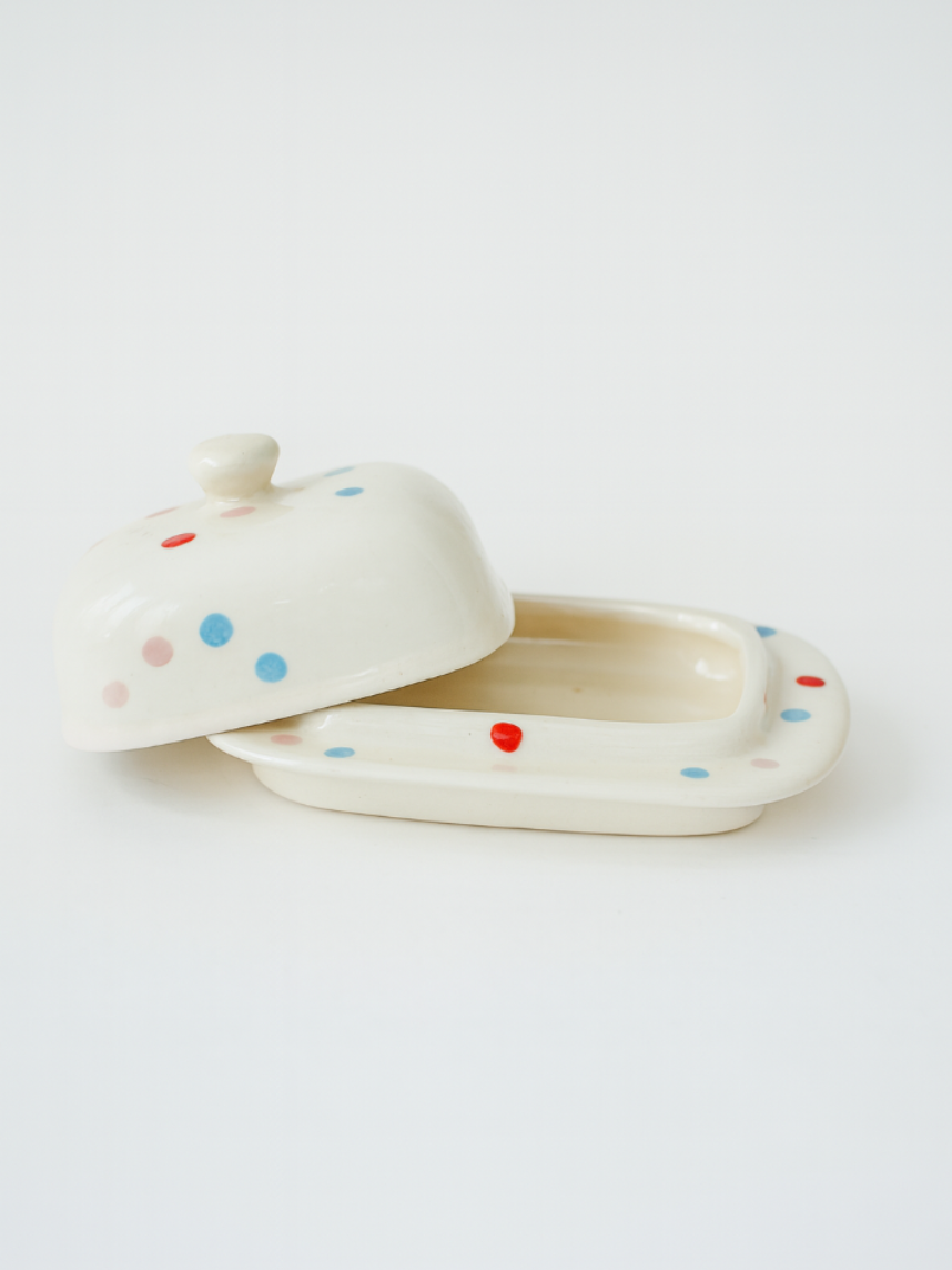 Маслёнка ручной работы «Конфетти», белая, керамика