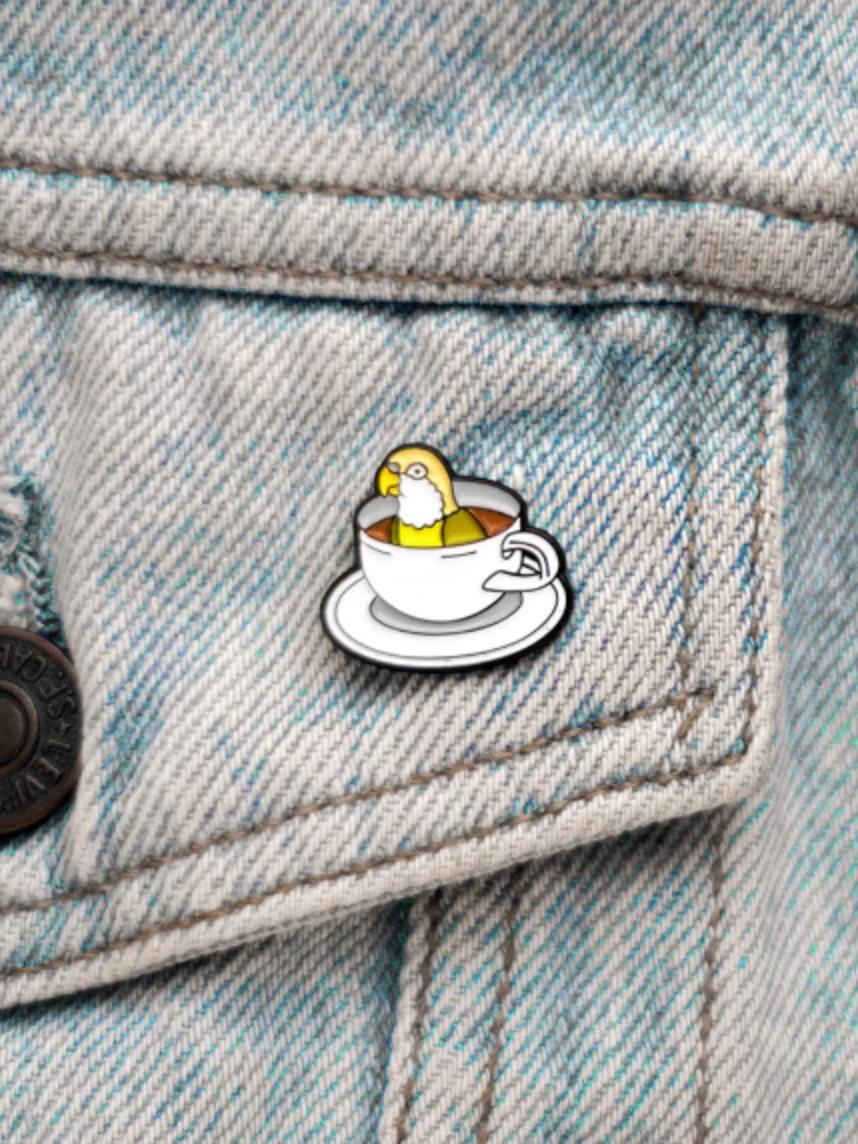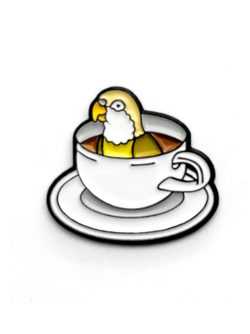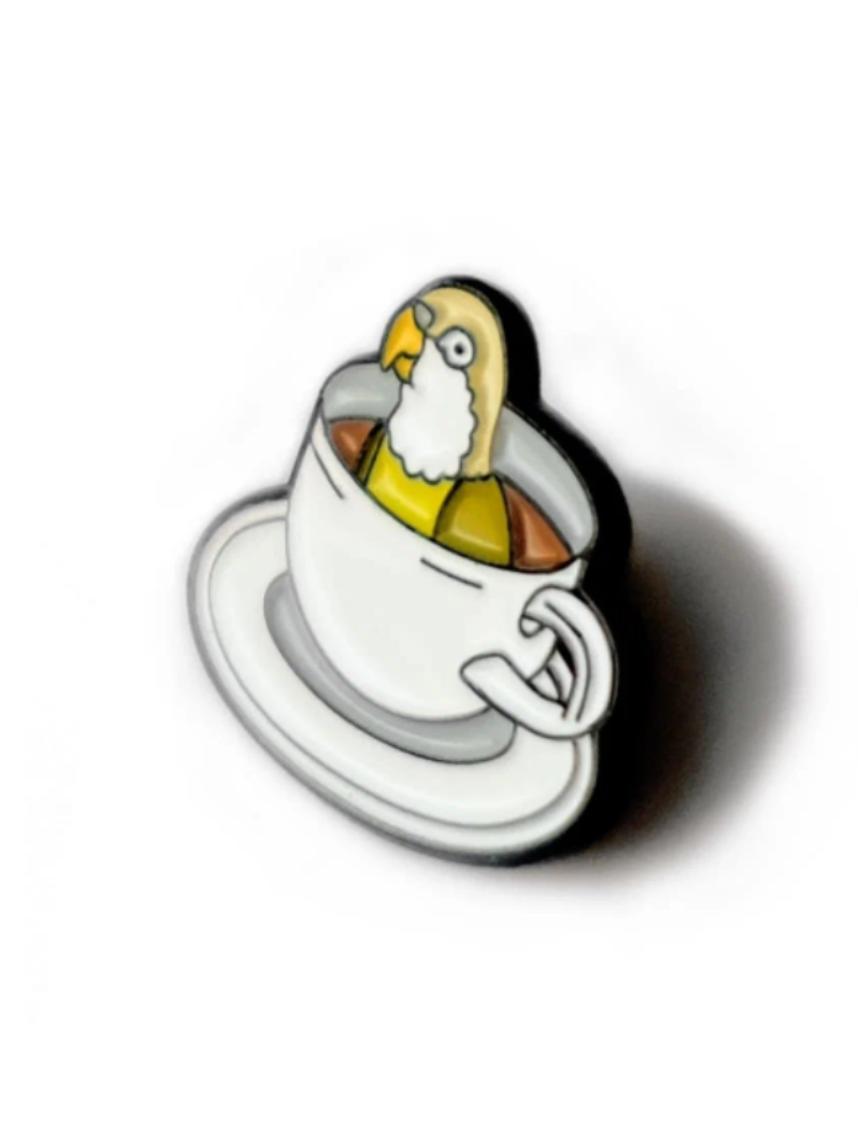 Металлический значок «Кофейный попугай» — это абсурдная милота, которая поднимает настроение лучше любого капучино.
