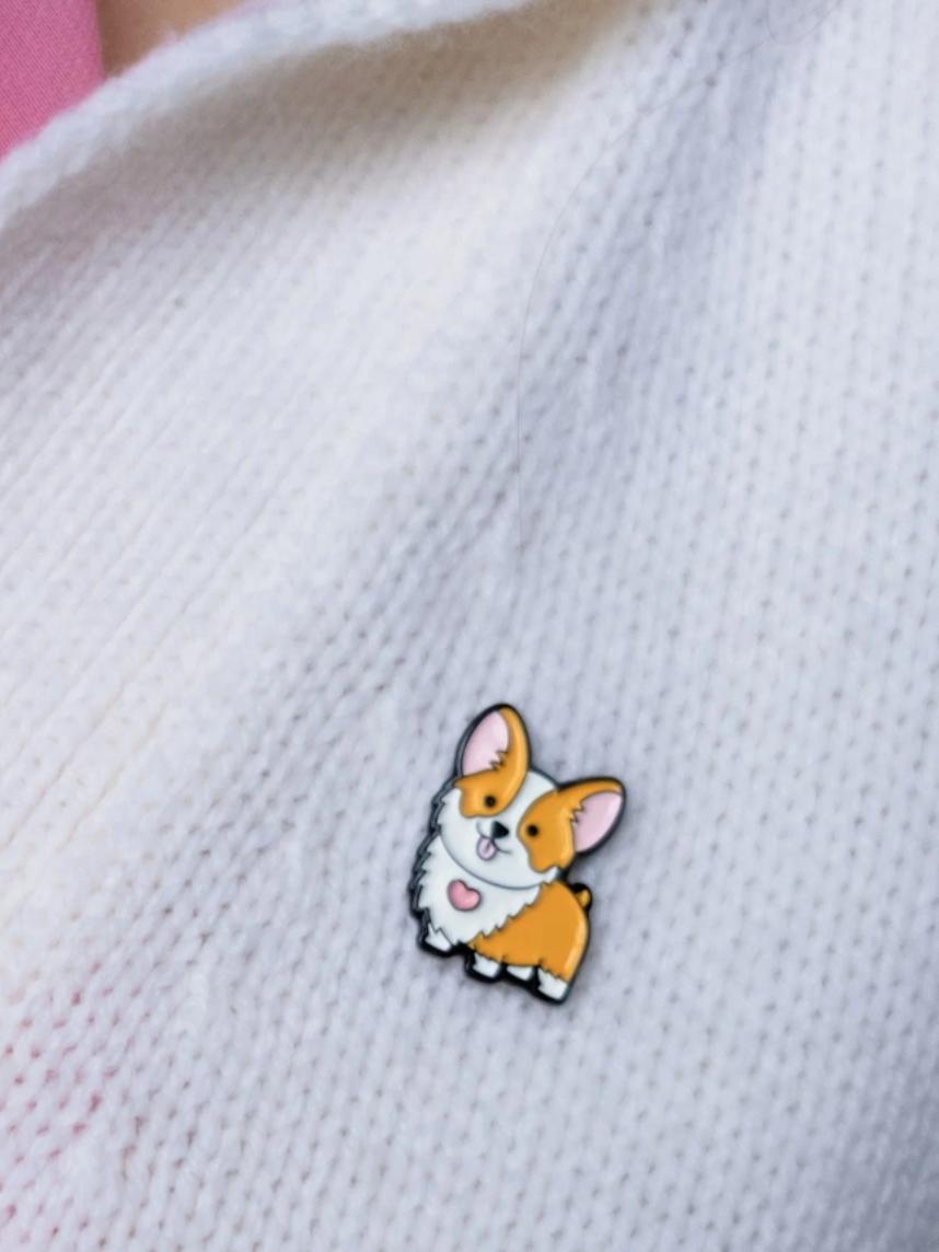 Отлично подойдёт в качестве подарка для любителей собак, животных и особенно корги. Легко крепится к одежде, рюкзаку или сумке.