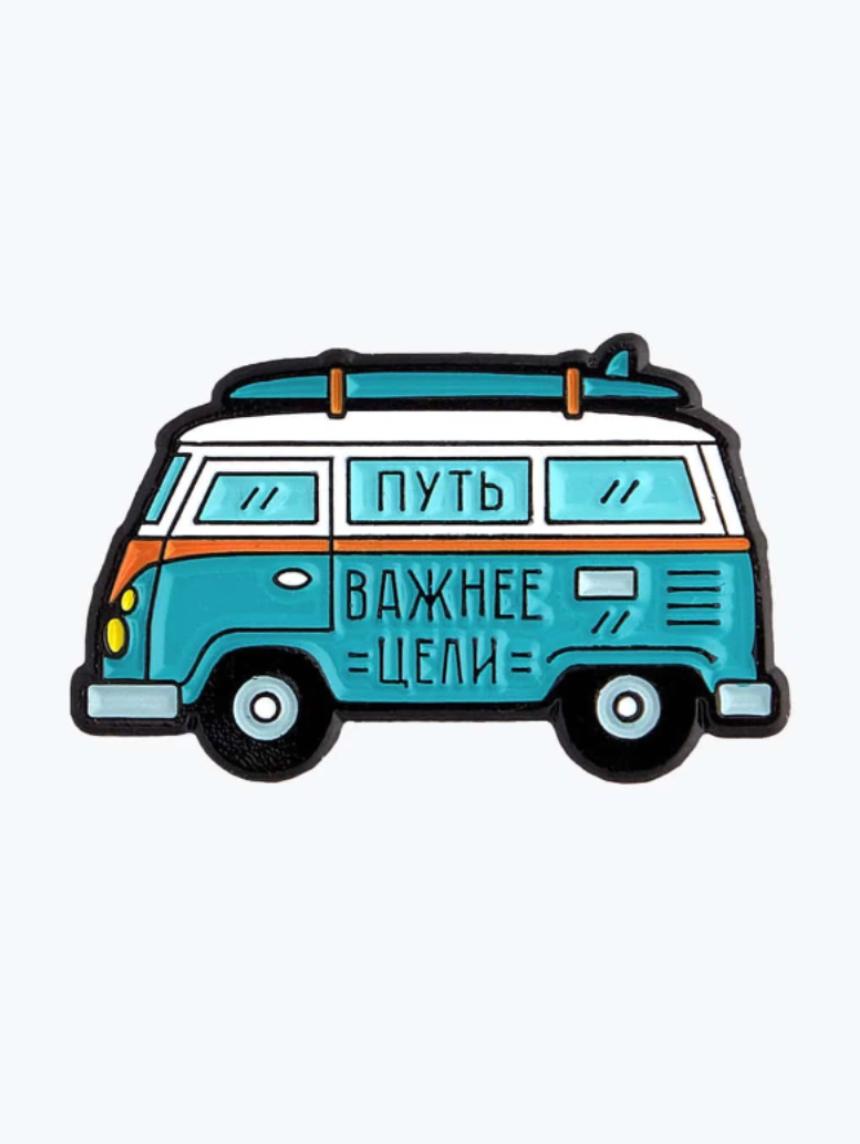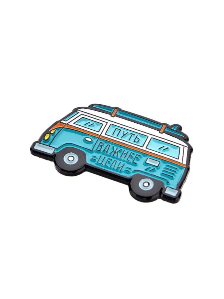 Металлический значок «Путь важнее цели» — это мини-фургон, который напоминает: главное — не спешить, а наслаждаться дорогой.