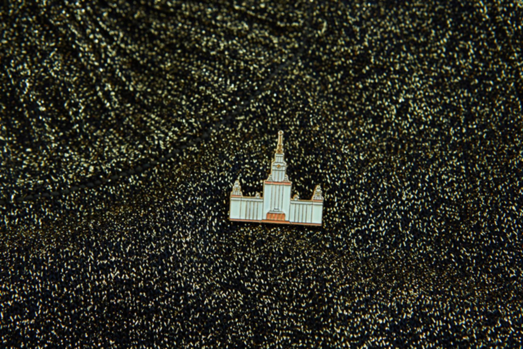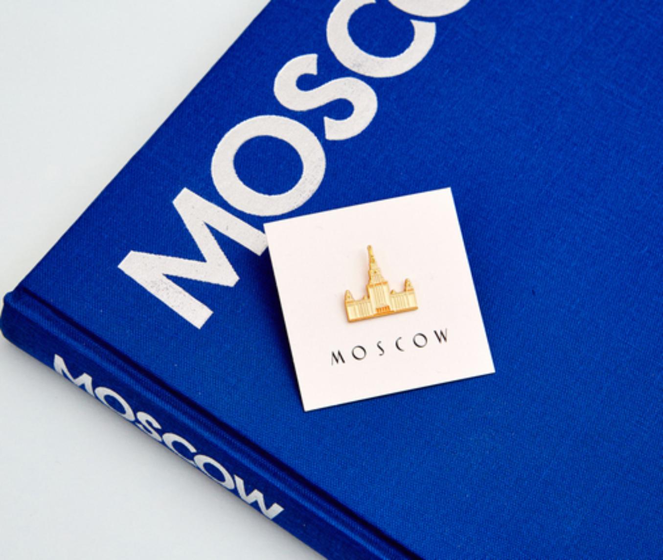 Металлический значок “Высотка МГУ” от бренда Heart of Moscow.